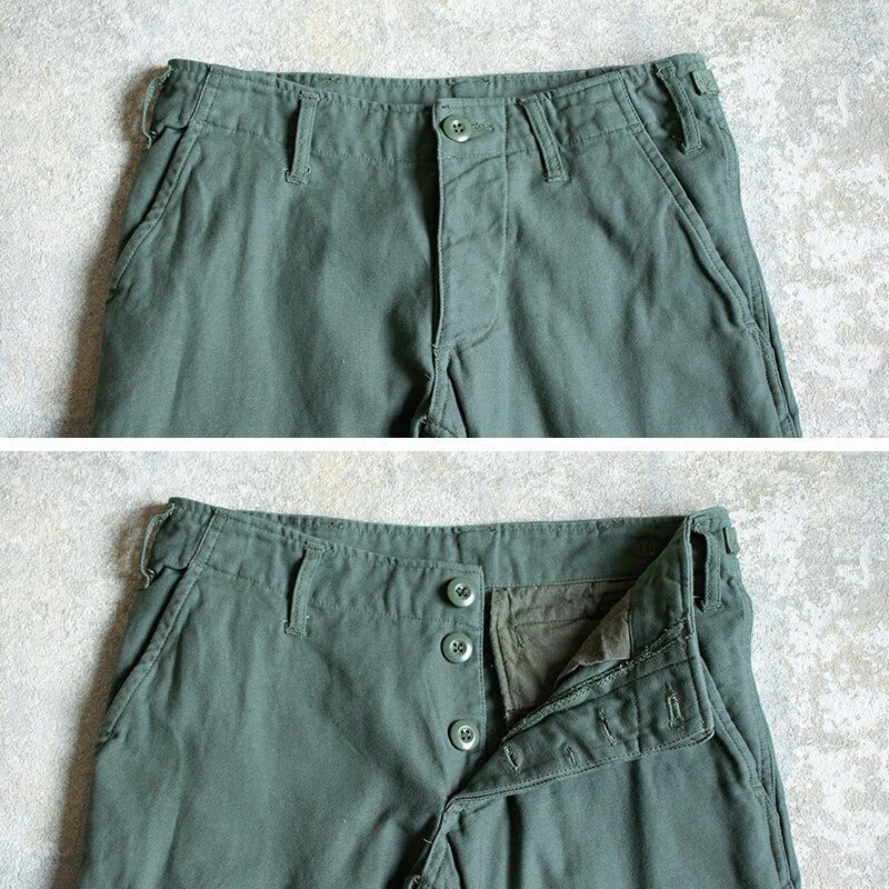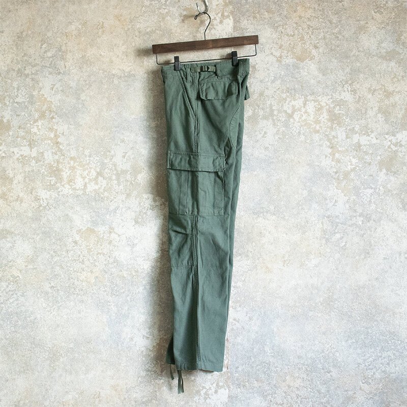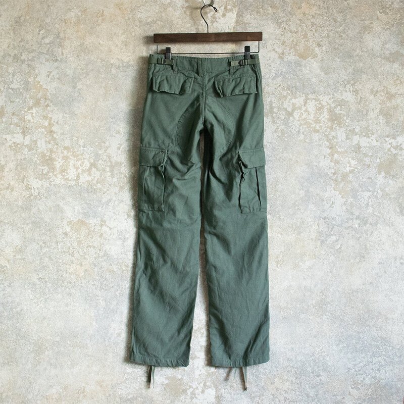 定番のBDUパンツのレディースデザインです。 メンズに比べ股上がかなり浅くシルエットも細身になっています。 生地はコットン100%で、ウォッシュ加工を施して古着の風合いをもたせています。 フロントはボタンフライで、ウエストのアジャスターでサイズが調節可能です。 ポケットは、サイド・バック・カーゴポケットが左右それぞれの計6つあります。 スッキリしたシルエットながら、裾の絞り方で雰囲気に変化をつけることができます。 ●素材:コットン65% /ポリエステル35% ●サイズ XS ウエスト70cm / 総丈98cm / 股下77cm / もも幅26cm / 裾幅20cm 沖縄離島を除く全国元払い500円でお送りいたします。落札価格にプラスでお願いします。1.2枚目の写真は流用です。