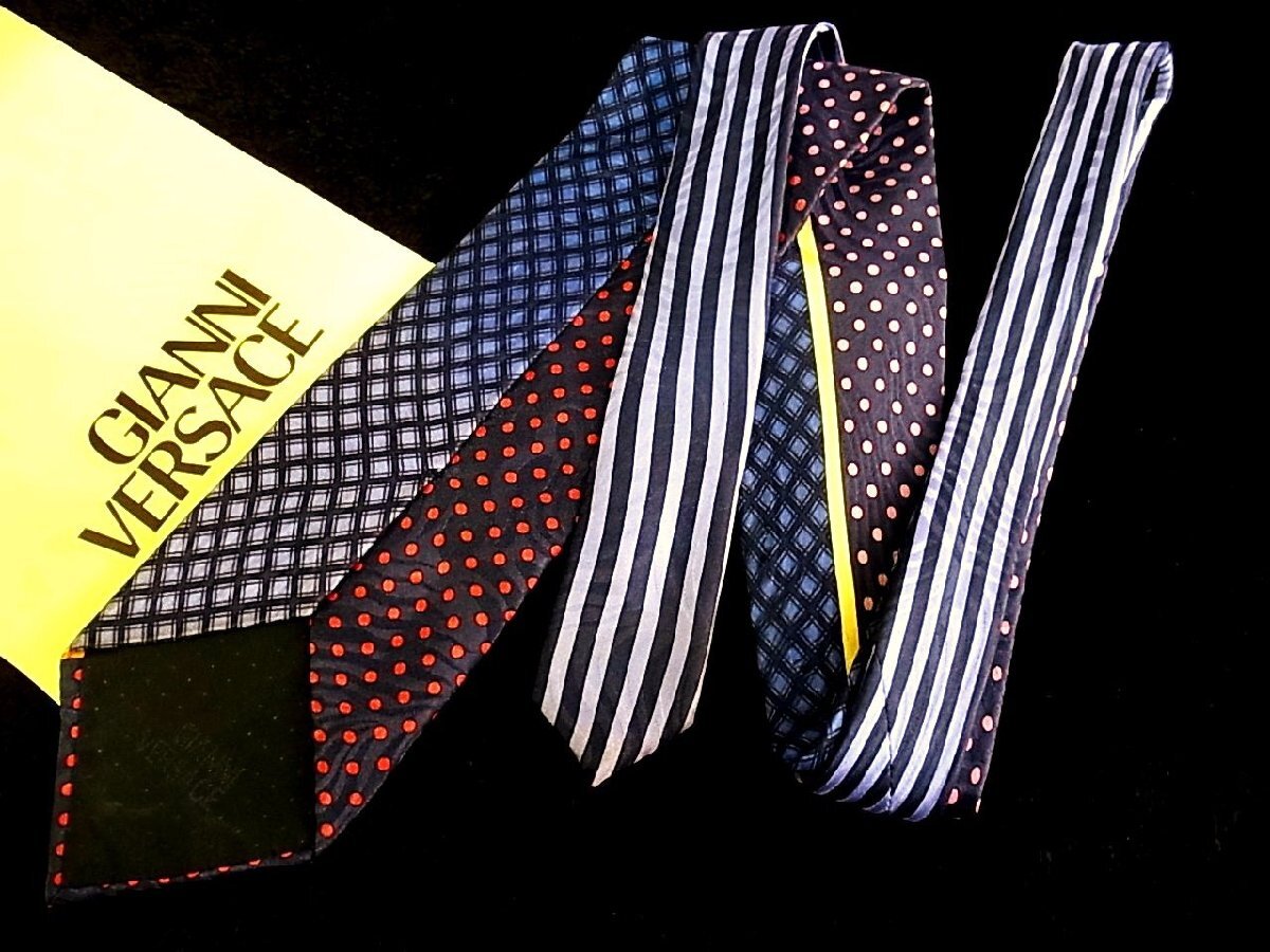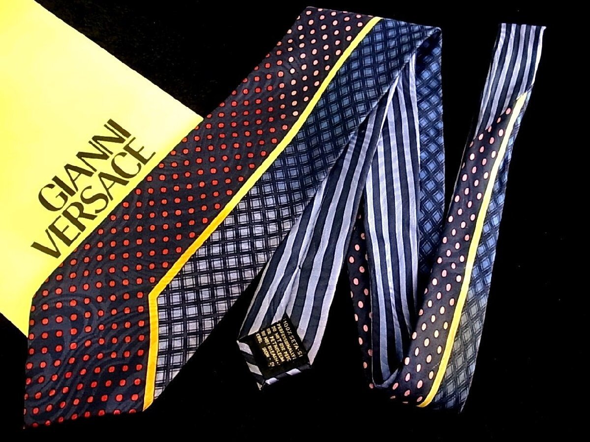 ★今週の特売★6875★高級ブランド★ヴェルサーチ【ドット 格子 柄】ネクタイ★