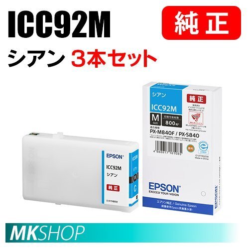 EPSON 純正 インクカートリッジ ICC92M シアン 3本セット