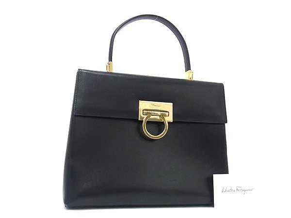 1円 ■美品■ Salvatore Ferragamo フェラガモ ガンチーニ レザー ワンハンドル ハンドバッグ レディース ブラック系 FR4909