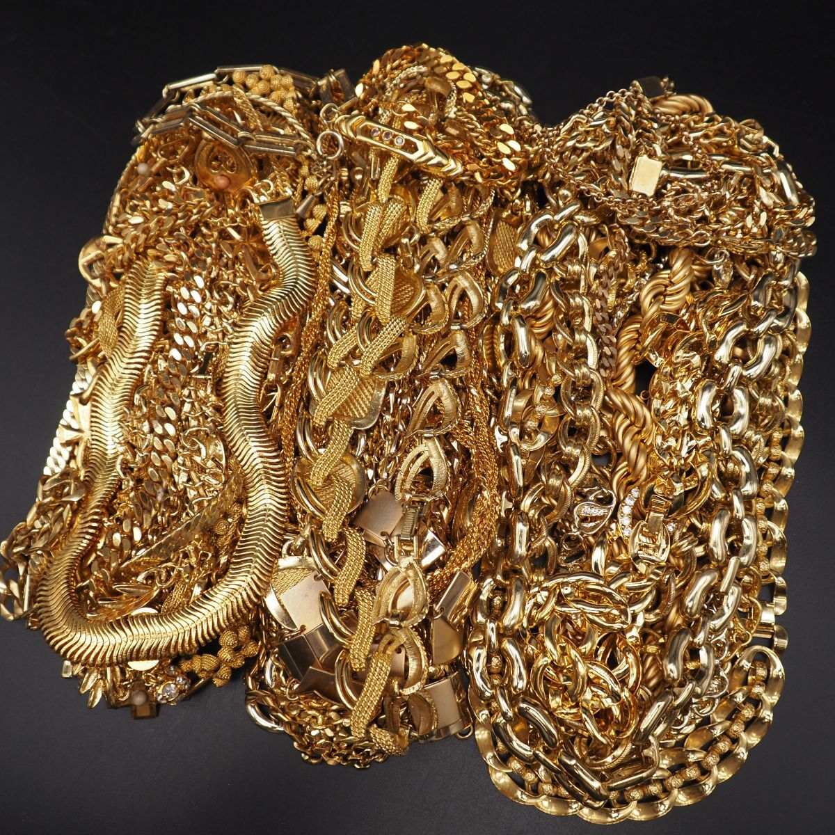 (15G1002) 1円 大量セット ゴールド ネックレス ブレスレット アクセサリー 等 約40本 1.5Kg以上 まとめて