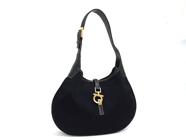 1円 ■美品■ Salvatore Ferragamo フェラガモ AU-21-2421 ガンチーニ ナイロンキャンバス ワンショルダーバッグ 肩掛けブラック系 FV0681