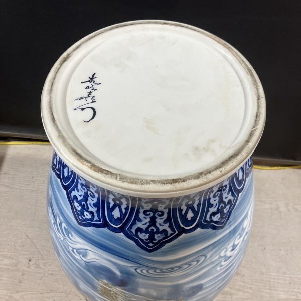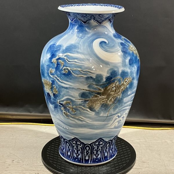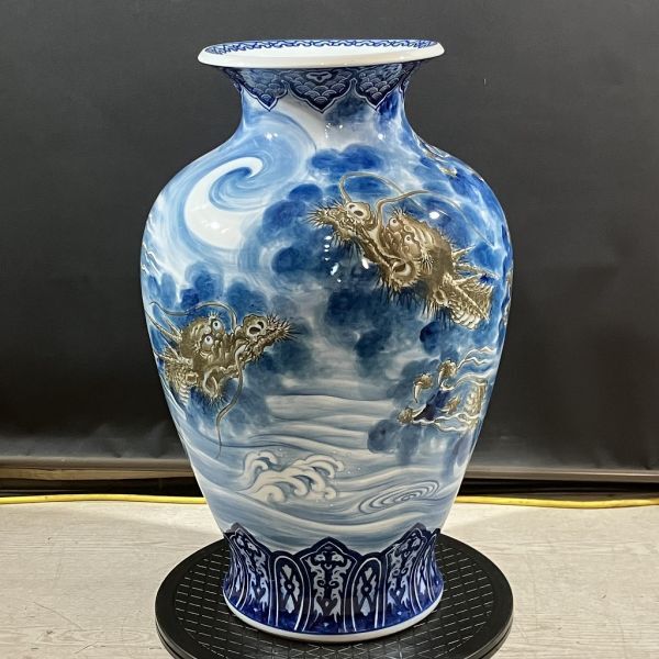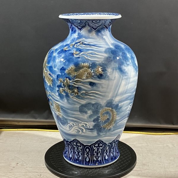 K3-316【直接引取歓迎 栃木県矢板市】有田焼 大花瓶 花瓶 花器 壺 陶芸 青 雲龍 双龍 高さ約62cm 骨董 展示品 新古品 長期保管品 | ||