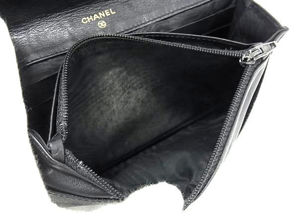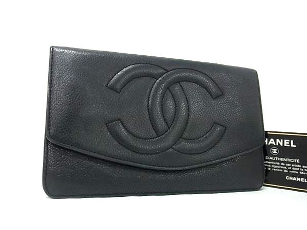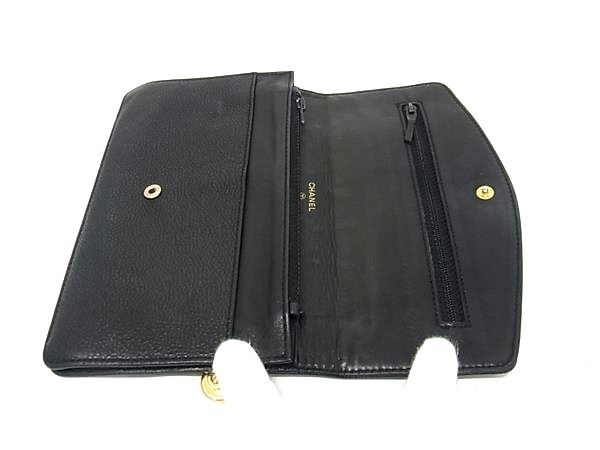 1円 CHANEL シャネル ココマーク キャビアスキン 二つ折り 長財布 ウォレット 札入れ 小銭入れ カード入れ ブラック系 FV1697