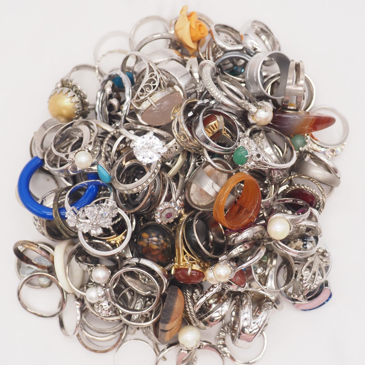 (YG1007) 1円 指輪 大量セット 約500g 真珠 パール シルバー カラーストーン リング 多数 アクセサリー ジャンク