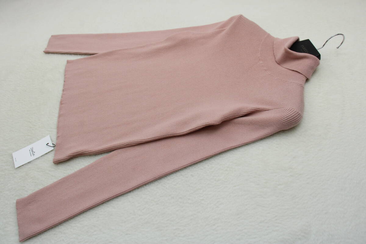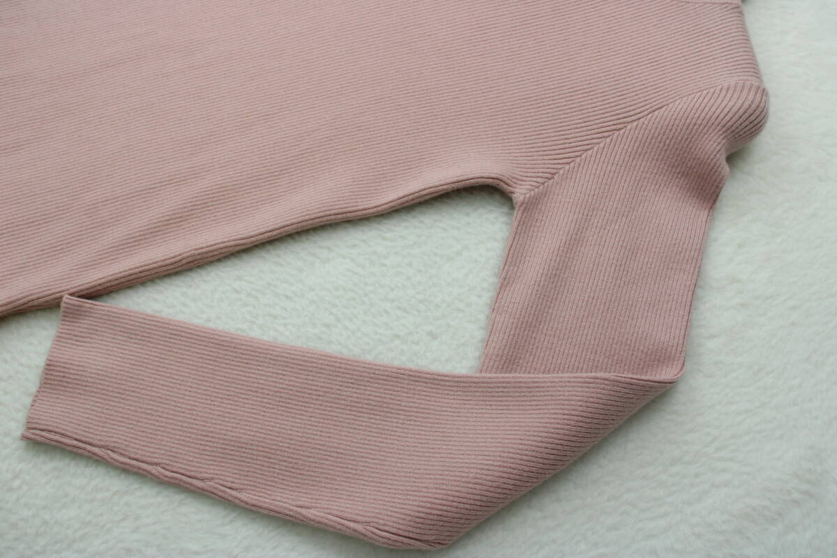 5128 新品タグ付き タートルネックリブニットセーター ライトピンクLサイズ