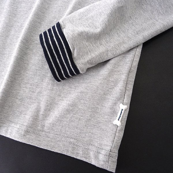 【Sheltie Club】 〈湘南の海〉をテーマとしたブランドコンセプトに沿って、マリンテイストを味付けしたシンプルなスタイルを信条とし、ラフで、気取らず、気張らない、ややゆったりとした着こなしを提案します。 左胸にワンポイント刺繍を施したロングスリーブTシャツ。 ネック部分・袖先部分をボーダー柄のリブに切り替えたデザインが特徴です。 左裾の側面に骨をモチーフとしたビスを装飾しており、細部にまでこだわった仕上がりとなっています。 |