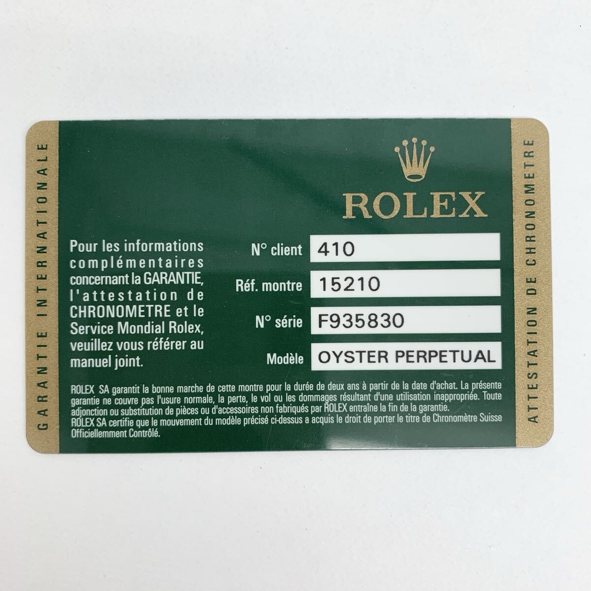 Rolex 15210のギャランティーです。