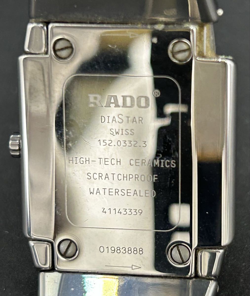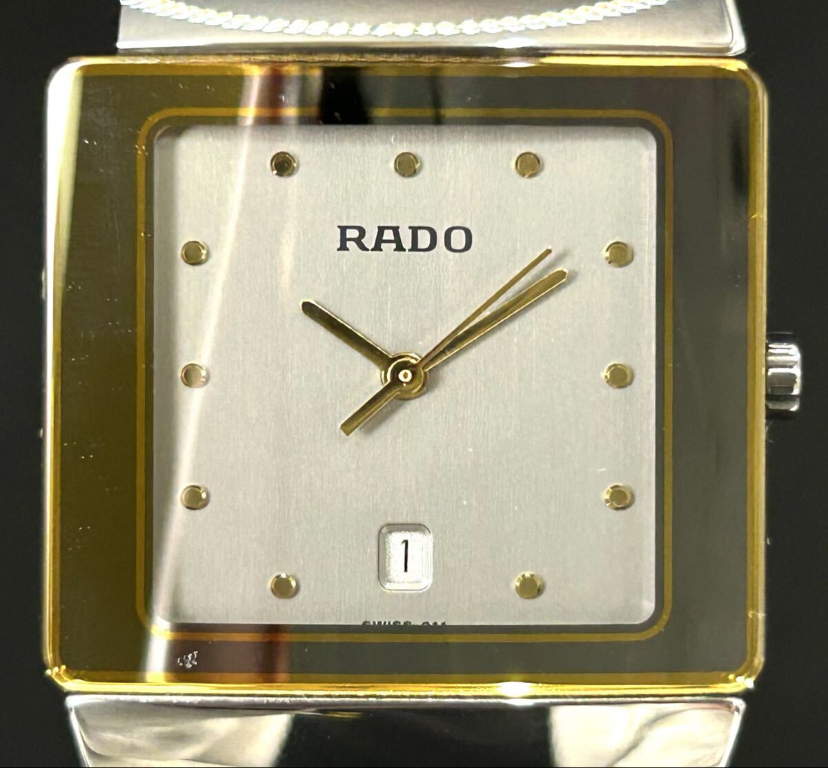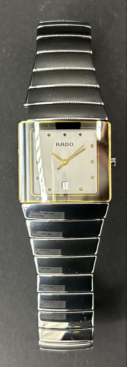 【SY378】RADO ラドー 腕時計 QZ クォーツ 152.0332.3 グレー文字盤 ダイヤスター デイト スクエア 3針 シルバー メンズ