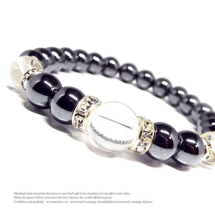 【STONE KITCHEN 天然石 パワーストーン】 ☆相思相愛 mutual love パワーストーンブレスレット♪☆ シンプルなデザインだから恋人同士でペア付けなんてのもおススメ!!! 人気No‘1パワーストーンブレスレットだから、街で見かけた素敵な人と偶然おそろいなんて事も!? お気に入りのカラーの石や素敵な由来のある石を選んでお出かけしょう♪ 好きな人と両思いになって お付き合いすることができるのは、とても幸せな経験です。 一度、両思いになることができたのなら その思いがすれ違わないように、またたくさんの努力をしましょう☆ 水晶は、基本となる石で全てのストーンに対して相性がよく また邪気を吸収してしまったストーンを浄化してくれる力があると言われています。 内周:約17cm サイズ:水晶 10mm・8mm 天然石:各種 8mm ヘマタイト磁気あり 1点 注意事項 ※金属部分は汗や汚れ等で変色する場合がございます。気になる場合は金属磨きや布等で軽くふき取る事をおすすめします。 ※石の種類によっては、艶を引き出すことを目的として、ワックスや着色加工がされているものもあります。 ※表示のサイズは必ずしも最大値・最小値のサイズのものが入っているわけではございません。 ※天然石のため同じものでも色味・模様などが異なります。 ※照明の具合で実際とは色合いが異なる場合がございます。 また、天然素材特有のクラック・内包物を有する場合がございます。予めご了承下さい。 | |