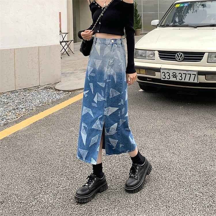 デニムスカート スリット タイトスカート バイカラー スリム 着痩せ デニム 【大きいサイズあり】 XL ブルー