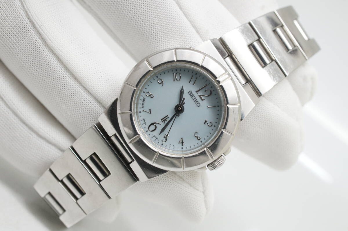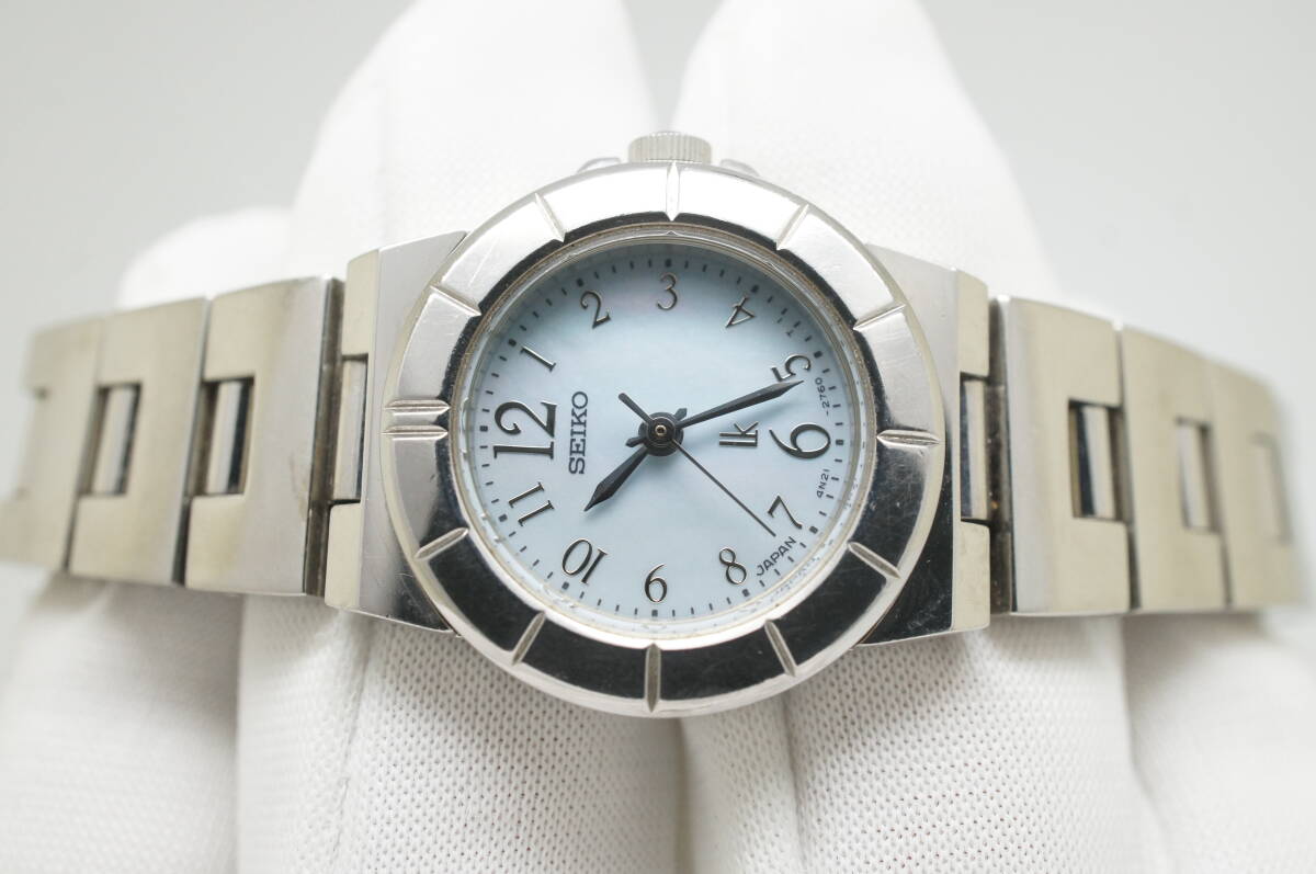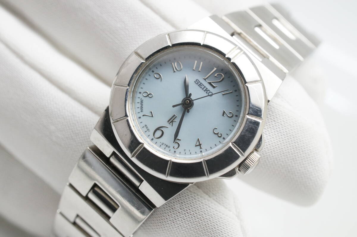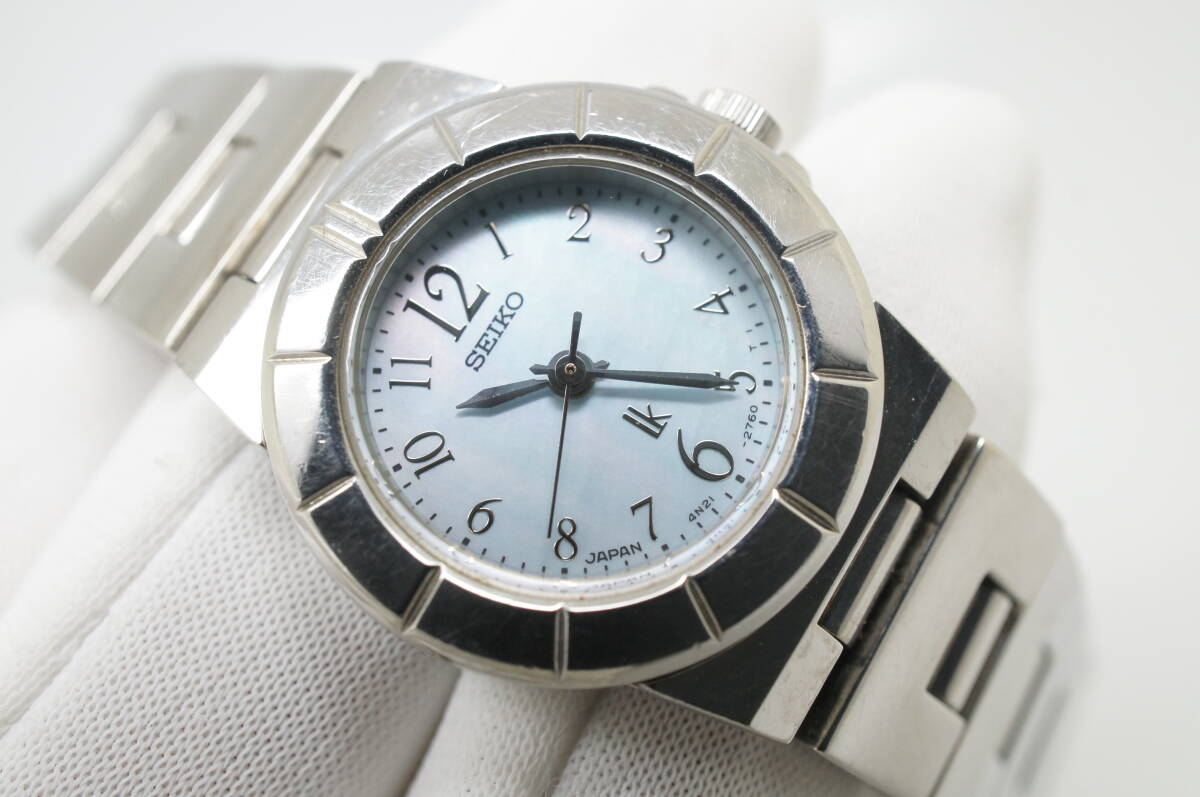 J57●作動良好 SEIKO セイコー lk LUKIA ルキア 4N21-1130 水色シェル文字盤 ラウンド型 レディース腕時計 シルバー お洒落 クォーツ