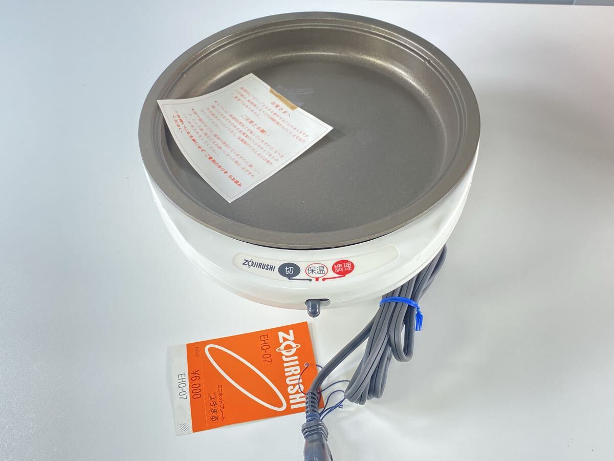 ★未使用品 ZOJIRUSHI 象印 EHQ-07 ホットプレート 1人用 コンパクト プチまる ホワイト 小型 保温 当時物 レトロ 昭和 現状品 管理KA519