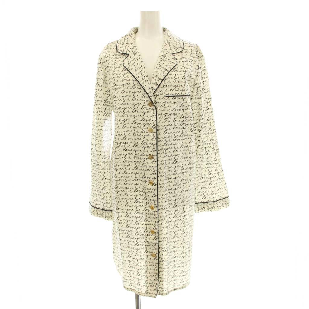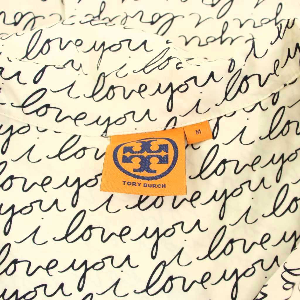 トリーバーチ パジャマ ナイトウェア シャツワンピース 長袖 ミモレ ロング ロゴプリント M 白 紺 21121414