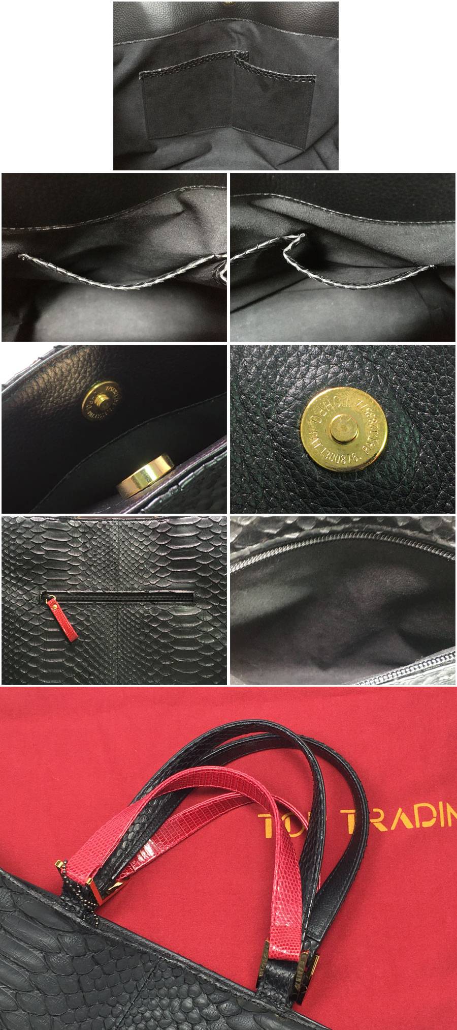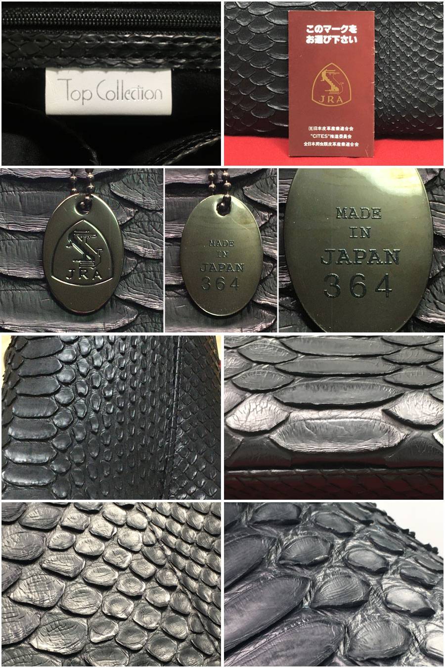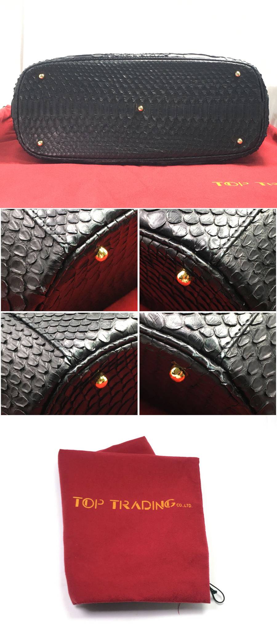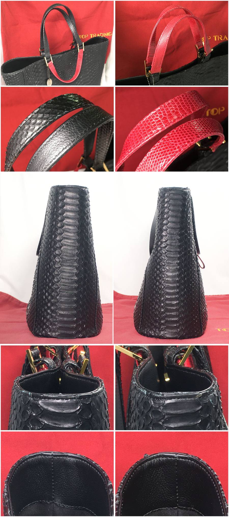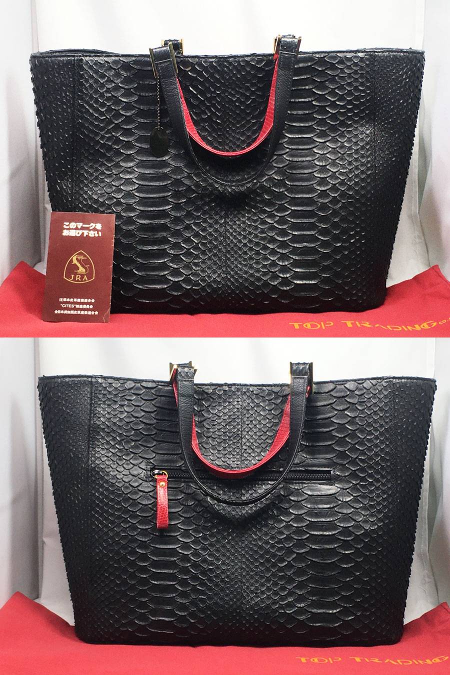 ●商品名 トップコレクション JRA公認 パイソン レザー ハンドバッグ ブラック×レッド トートバッグ JRAタグ へび革 保存袋付 美品!