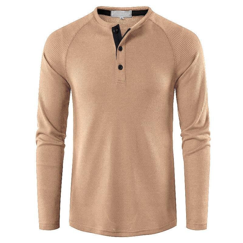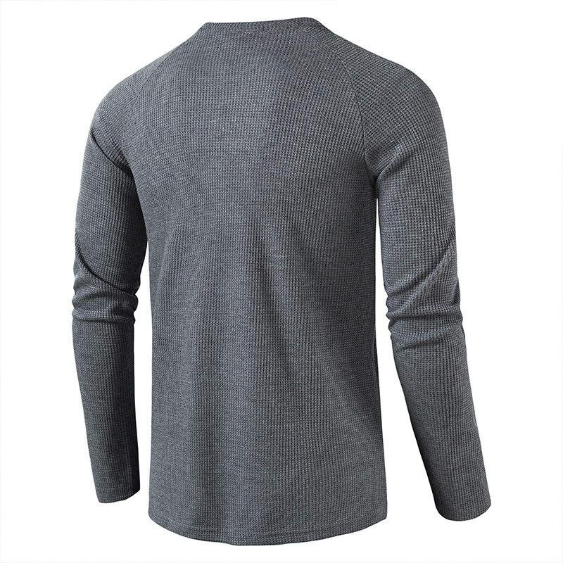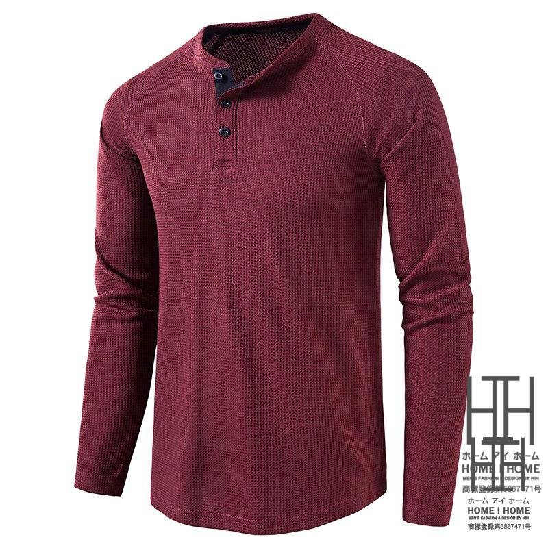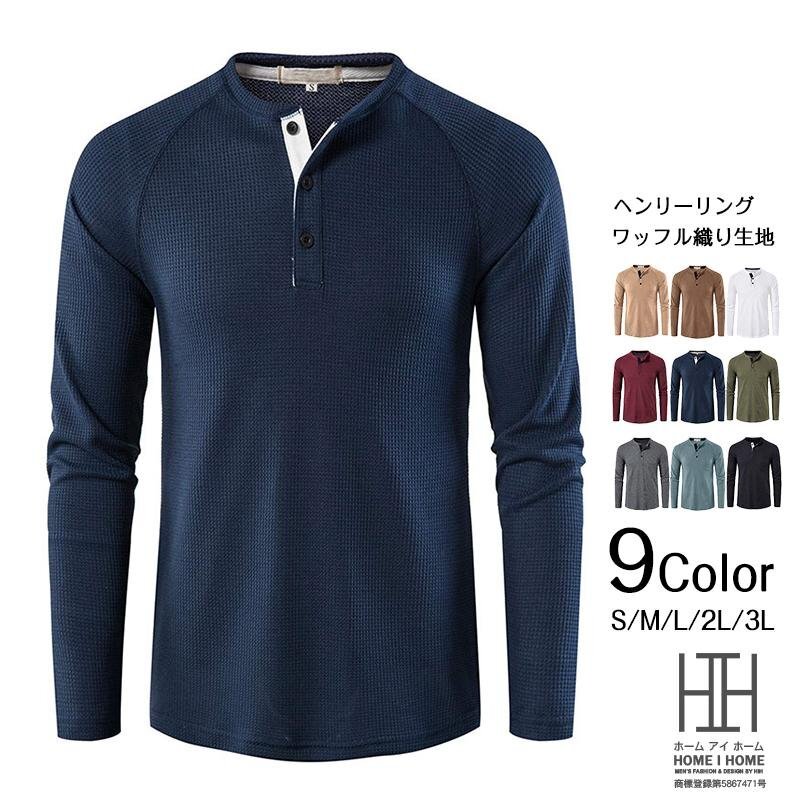 定番のワッフル生地ヘンリーネック長袖tシャツ。