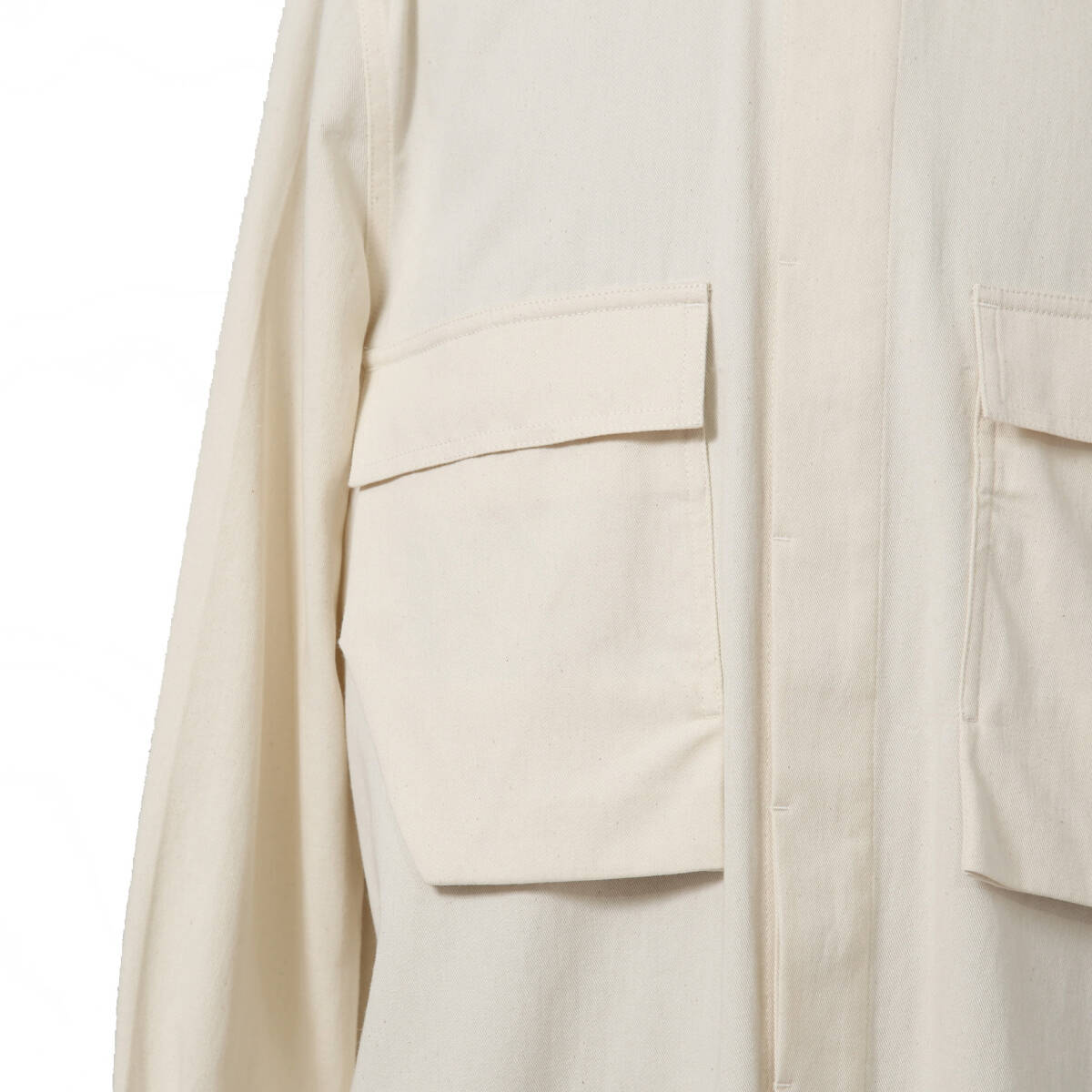生成りのコットンキャンバス素材をベースに製作されたフィールドシャツ