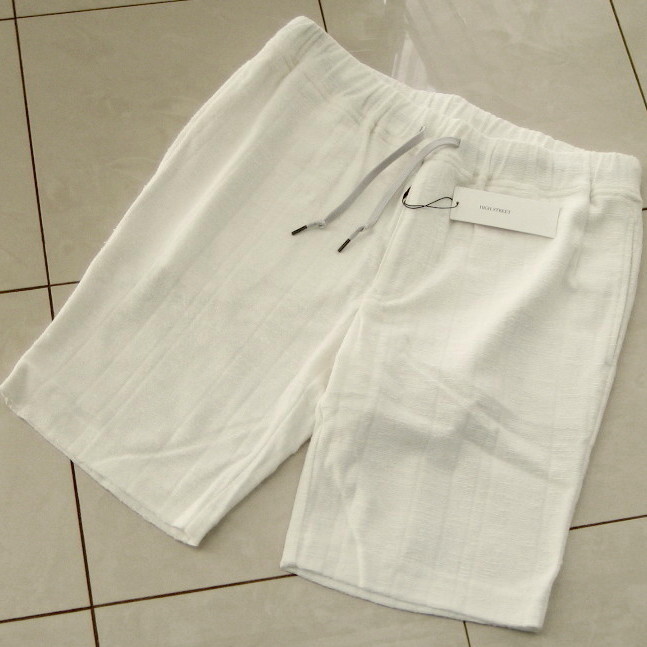 1.5万 新品 ハイストリート L ストライプ柄針抜きパイルショーツ ボワイト サンプル 143