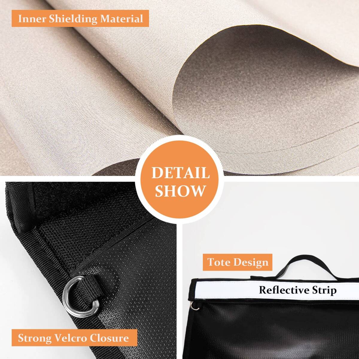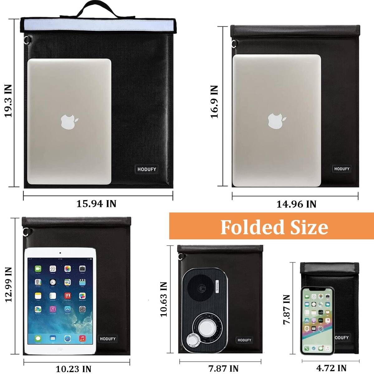 特大容量のファラデーケージ - このRFIDキーフォブプロテクターは、展開時のサイズは20 x 15インチ、折りたたみ時のサイズは16.9 x 15インチ、大型ノートパソコン、タブレット、携帯電話、カード、現金、書類、ラジオ、GPSユニット、その他の電子機器にフィットします。中程度の信号ブロックポーチの展開サイズは15 x 10インチ、折りたたみサイズは12.8 x 10インチです。 タブレット、携帯電話、 カード、現金、携帯電話用キーフォブ用の小型RFIDポーチ。展開サイズは7.7×4.7インチ。携帯電話、カード、現金、ラジオを収納できます。