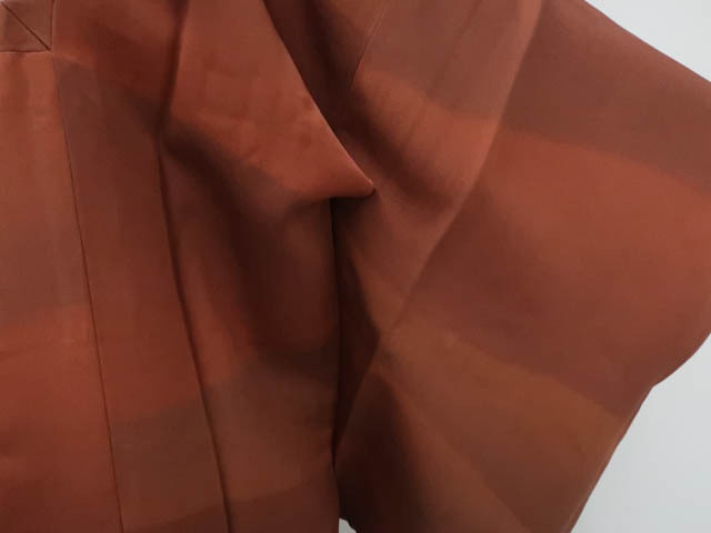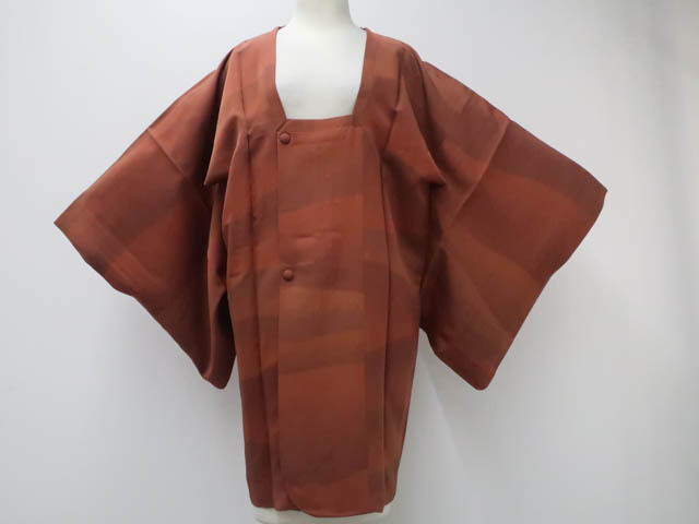 リサイクル商品のため、羽裏に点しみがございます。 所々薄汚れがございますが着用可能なお品です。 地色は 赤茶です。 1枚目の画像が近いお色かと思われます。 素材は正絹です。 |