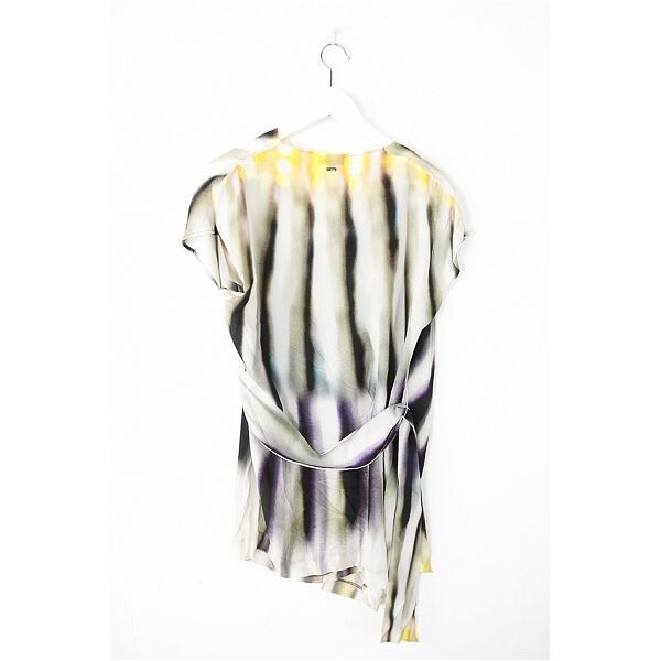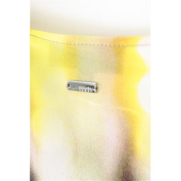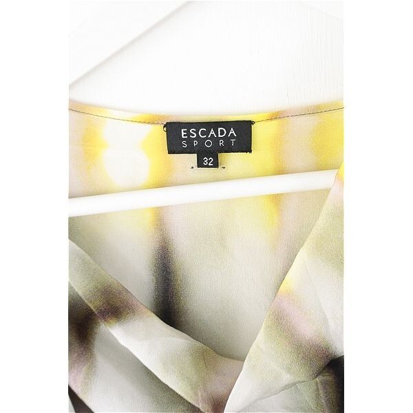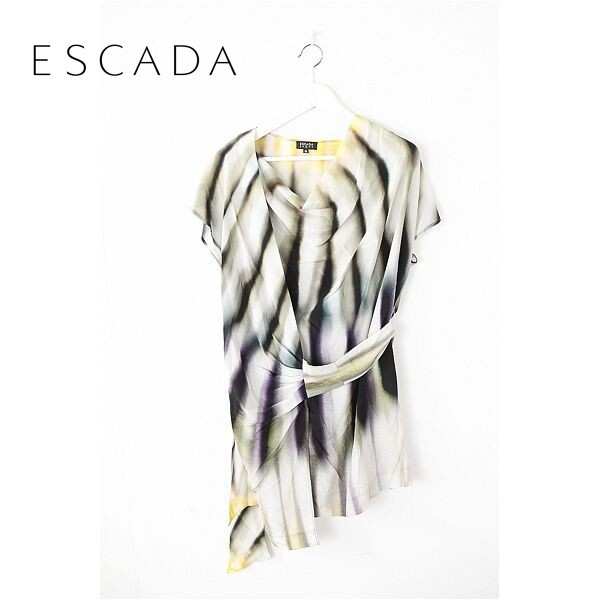 A3988/極美品 春夏 ESCADA エスカーダ シルク100% デザイン 変形 グラデーション 巻き ラップ フリル 膝丈 ワンピース 32 白 紫/レディース