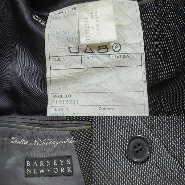 A521/秋冬 総裏 BARNEYS NEWYORK バーニーズニューヨーク ウール ナイロン シングル3Bスーツ ジャケット セットアップ 上下48 灰色/メンズ