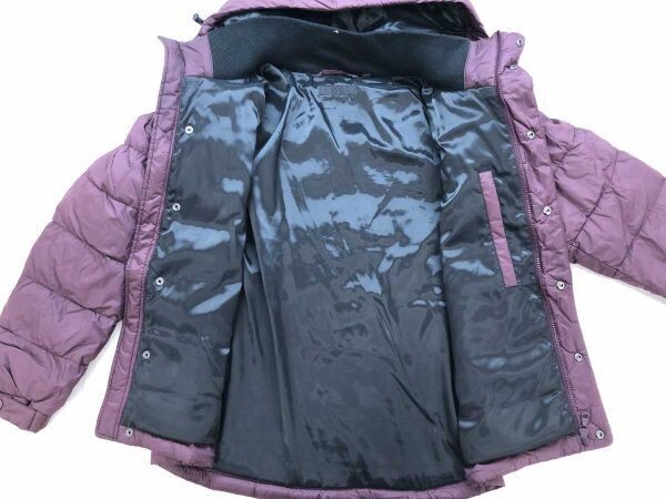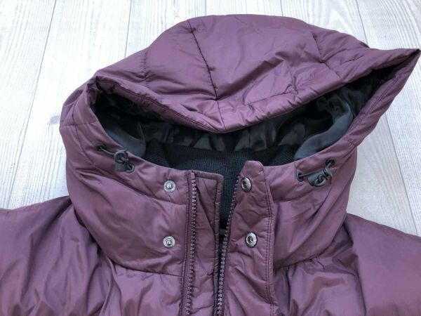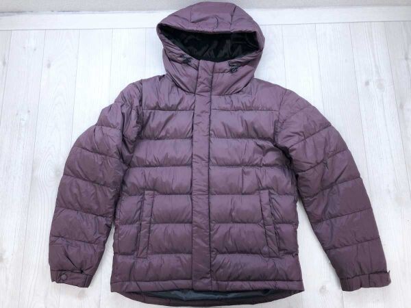 ユニクロ UNIQLO アメカジ アウトドア ストリート フード付き ダウンジャケット パーカー メンズ 比翼ジップ ダウン80%フェザー20% S 赤紫です。