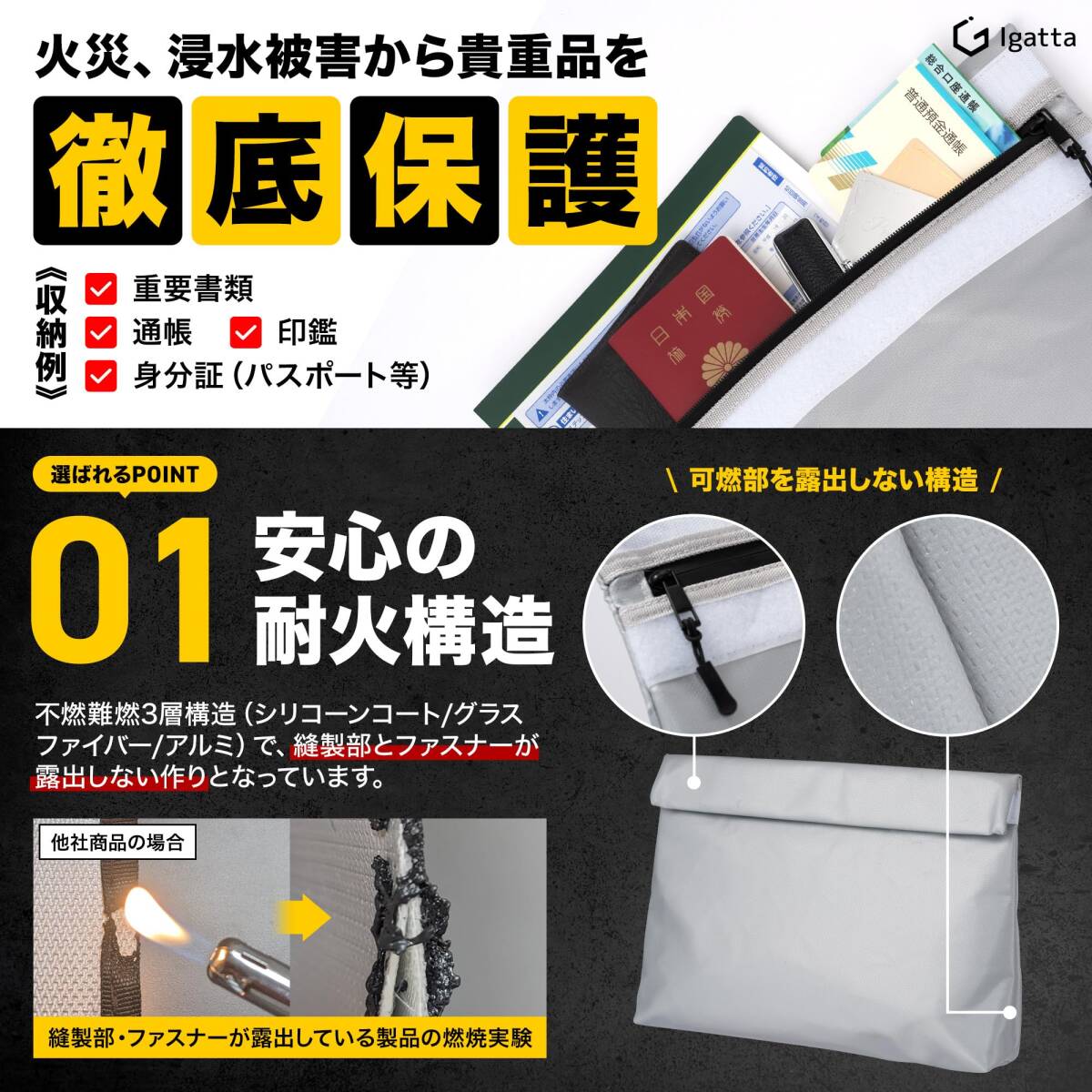 ?【安心の耐火構造】不燃難燃3層構造(シリコーンコート/グラスファイバー/アルミ)で縫製部とファスナーが露出しない作りとなっており、万が一火災が起きた際にも安心です。
