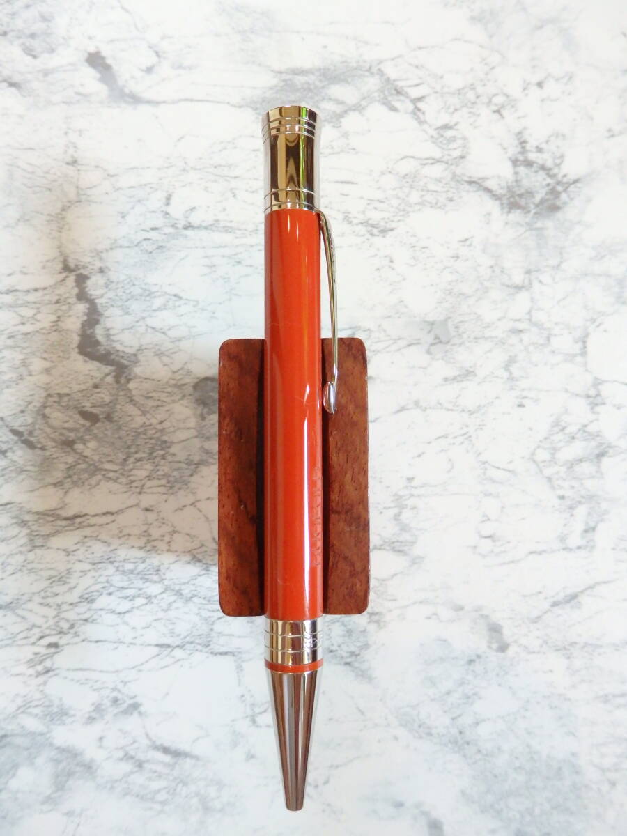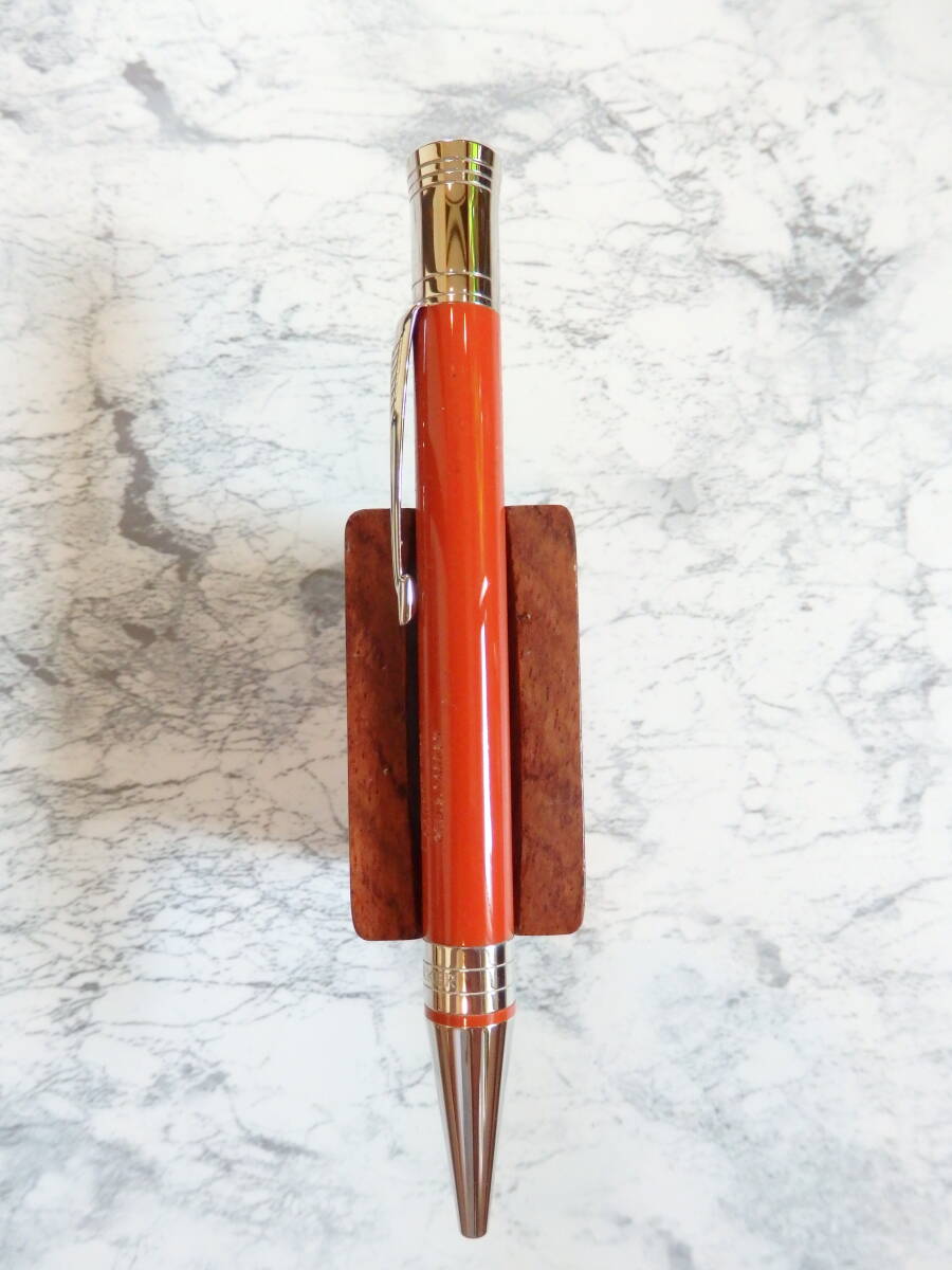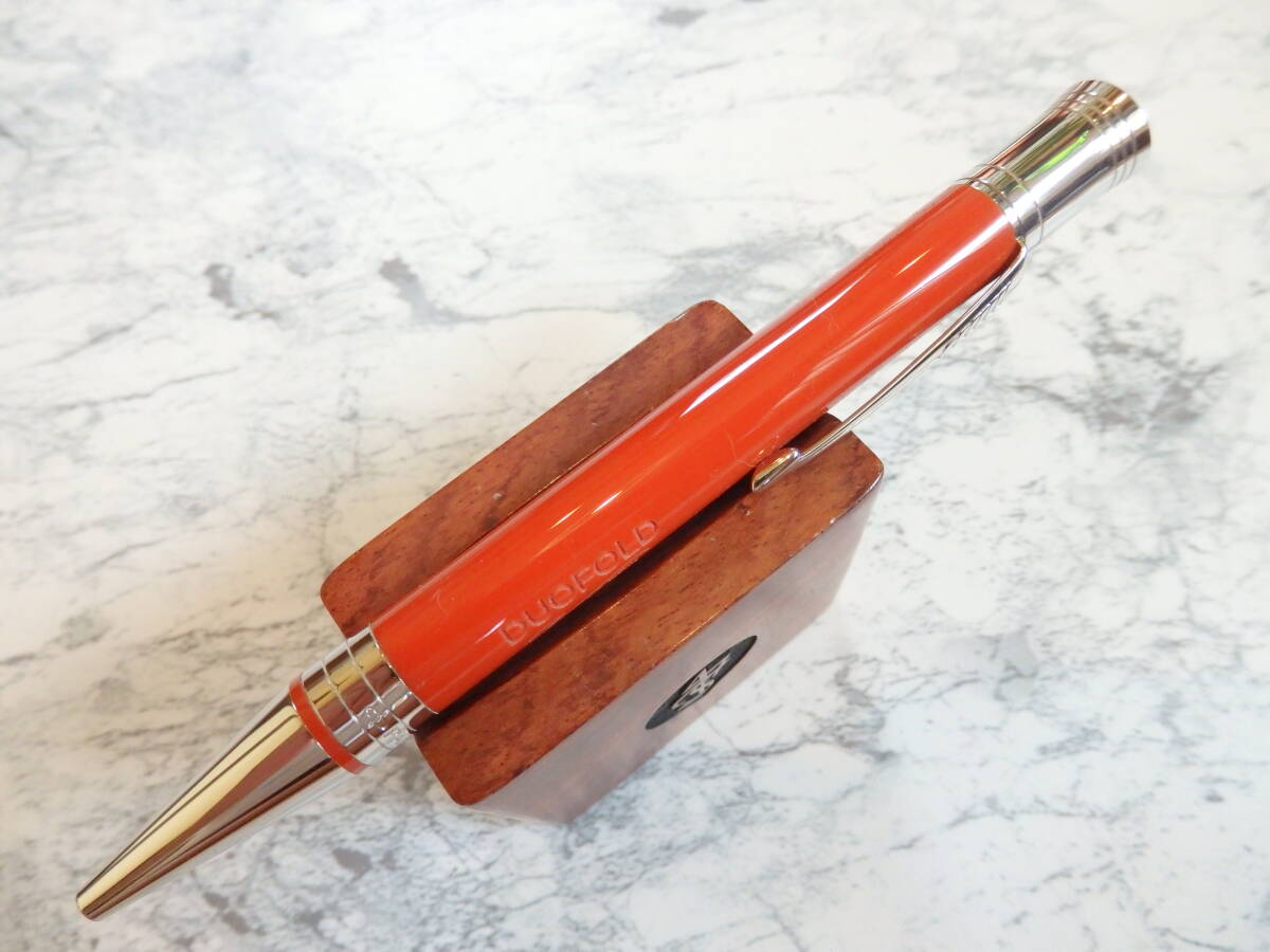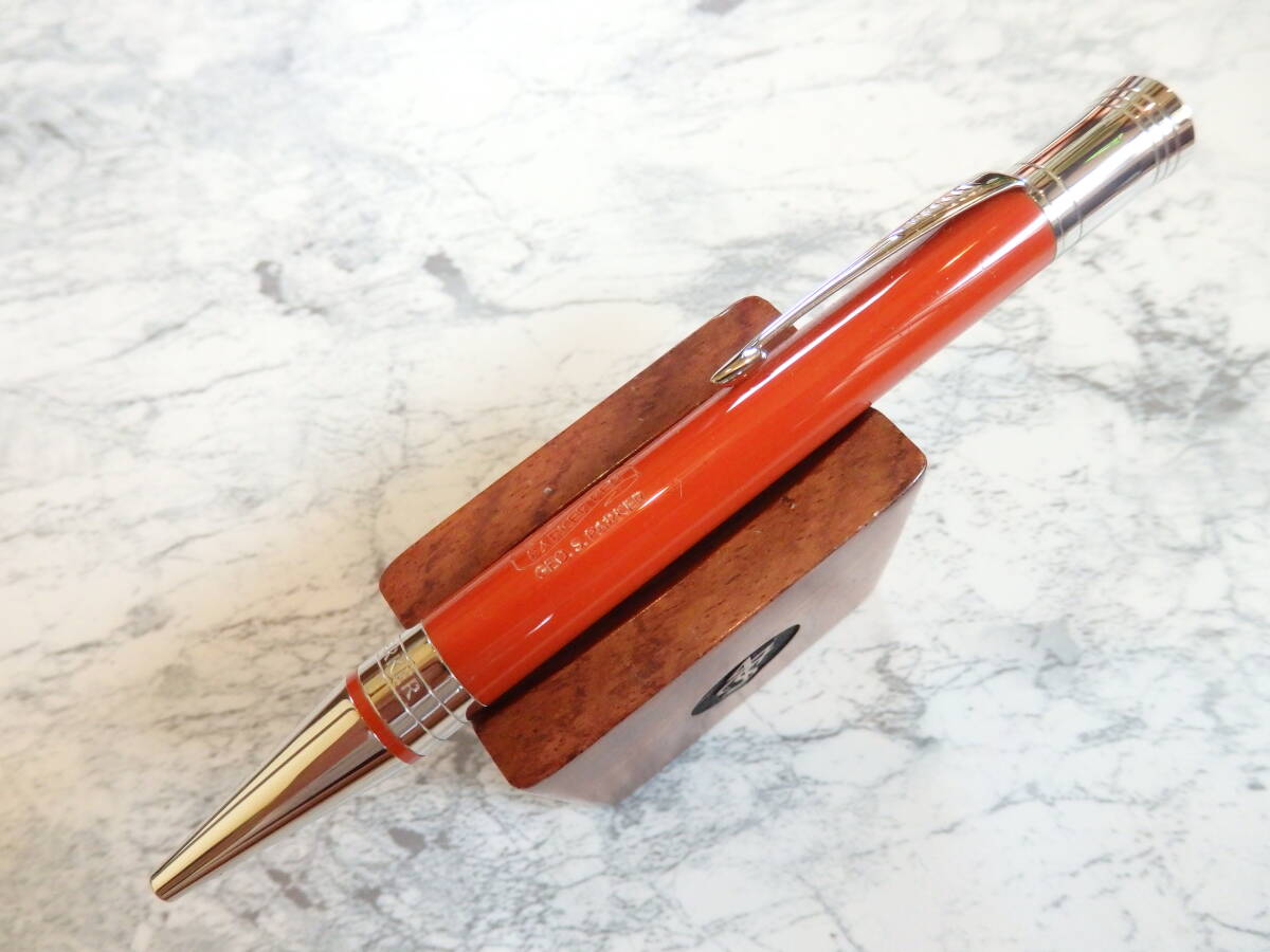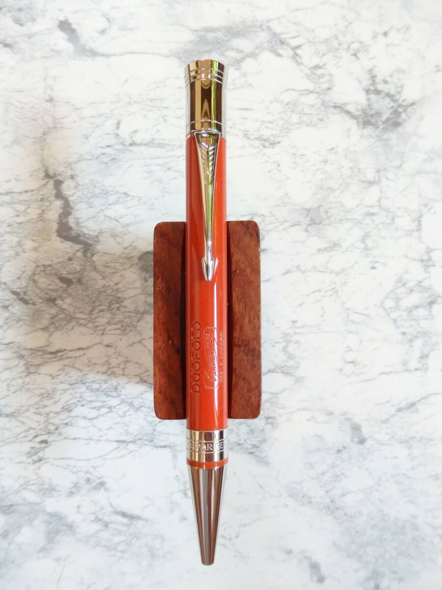 パーカーボールペンのフラッグシップ「デュオフォールド」のビッグレッドST(シルバートリム)のツイスト式ボールペンです。