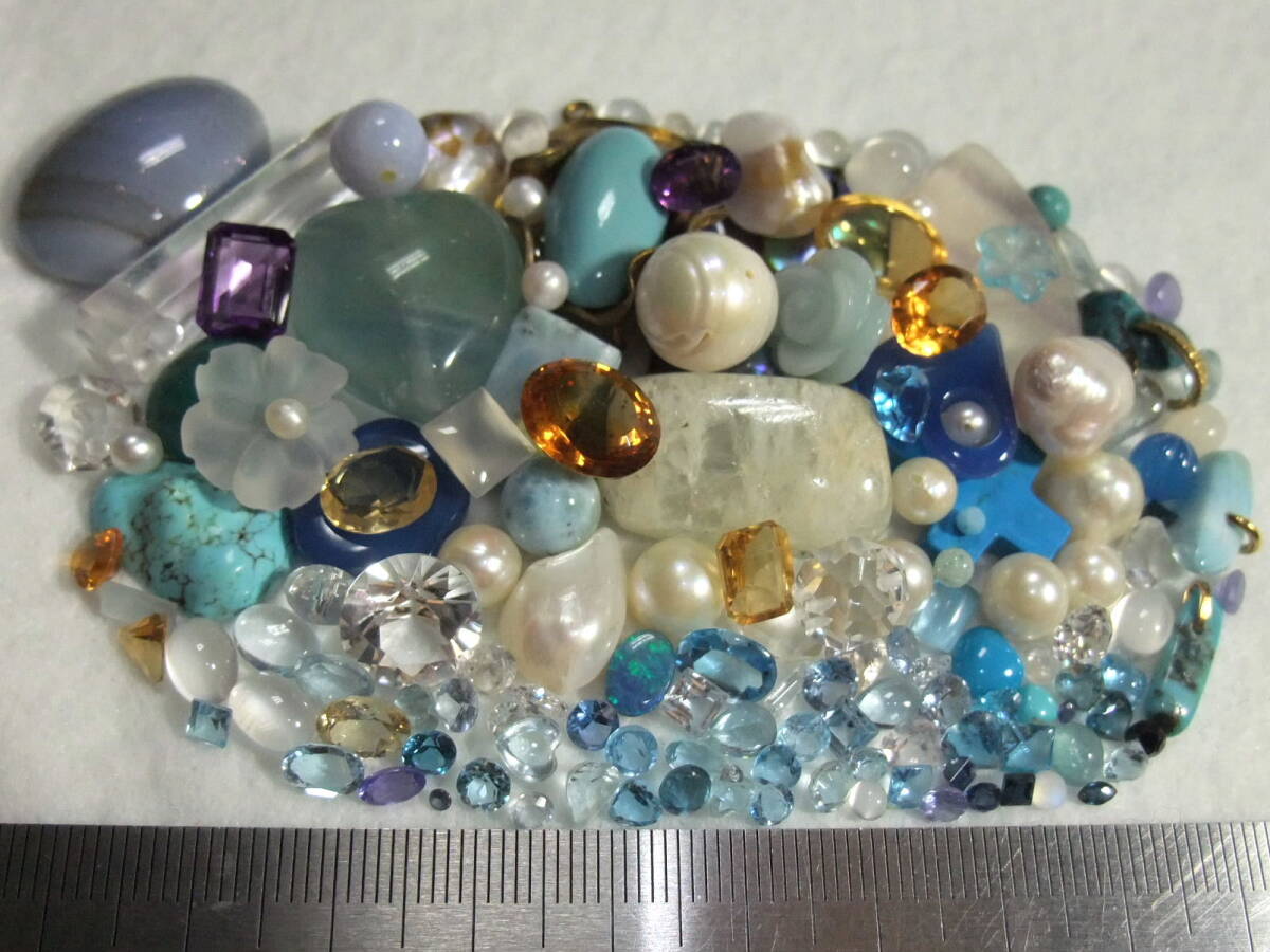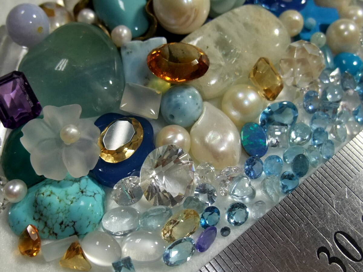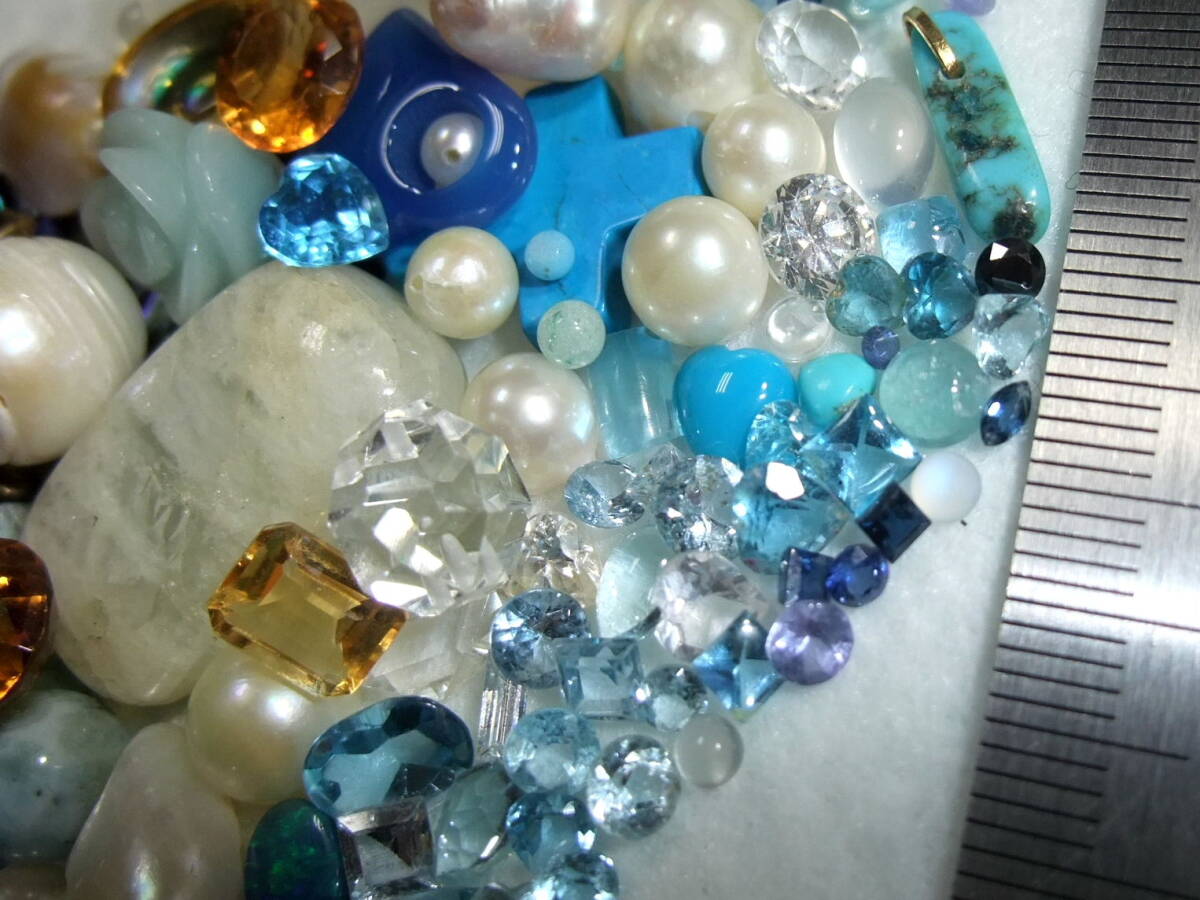 綺麗!宝飾用ルースセット!アクアマリンaquamarineブルートパーズmoonstoneアコヤ真珠akoyapearl等未使用used色々まとめてパワーストーン7o7