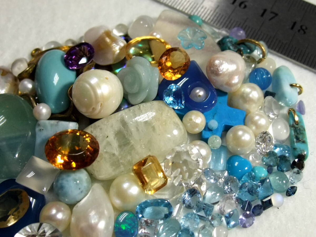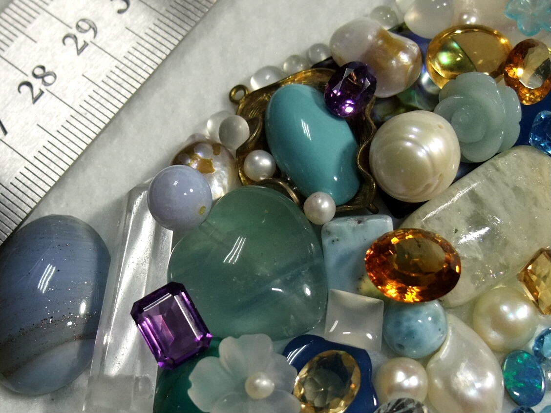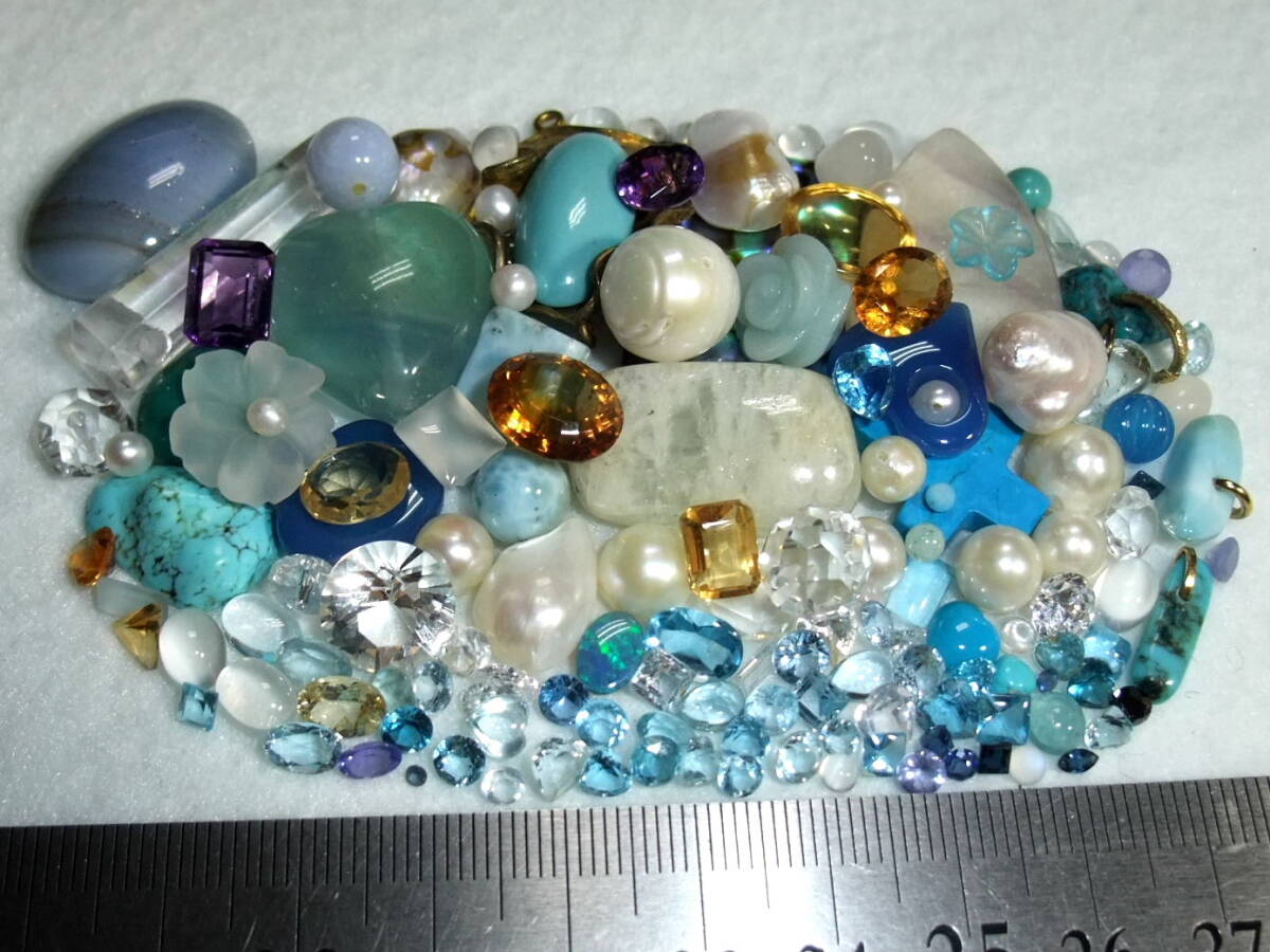 綺麗!宝飾用ルースセット!アクアマリンaquamarineブルートパーズmoonstoneアコヤ真珠akoyapearl等未使用used色々まとめてパワーストーン7o7