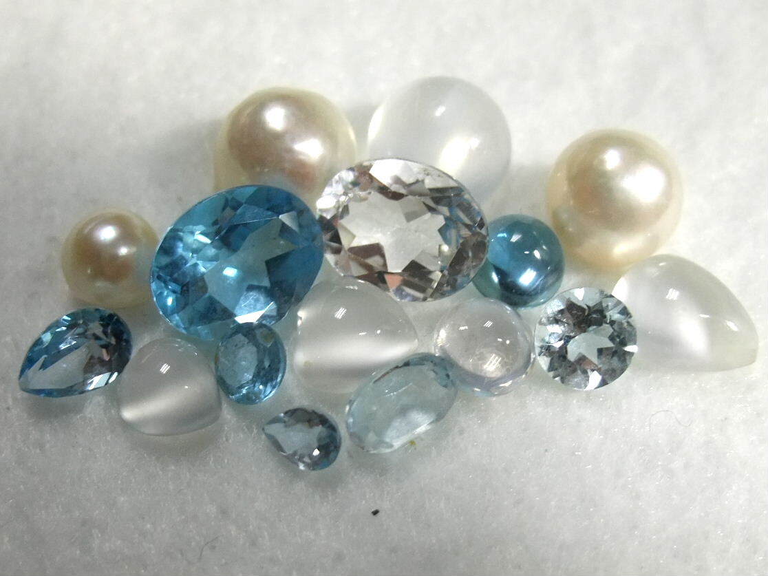 宝飾用カットルースセットakoyapearlアコヤ真珠アクアマリンaquamarineブルートパーズbluetopazムーンストーンmoonstone等色々カラーパワーストーンお守り製作や魔除け厄除け開運グッズにも☆色々まとめておまとめ大量同梱可能