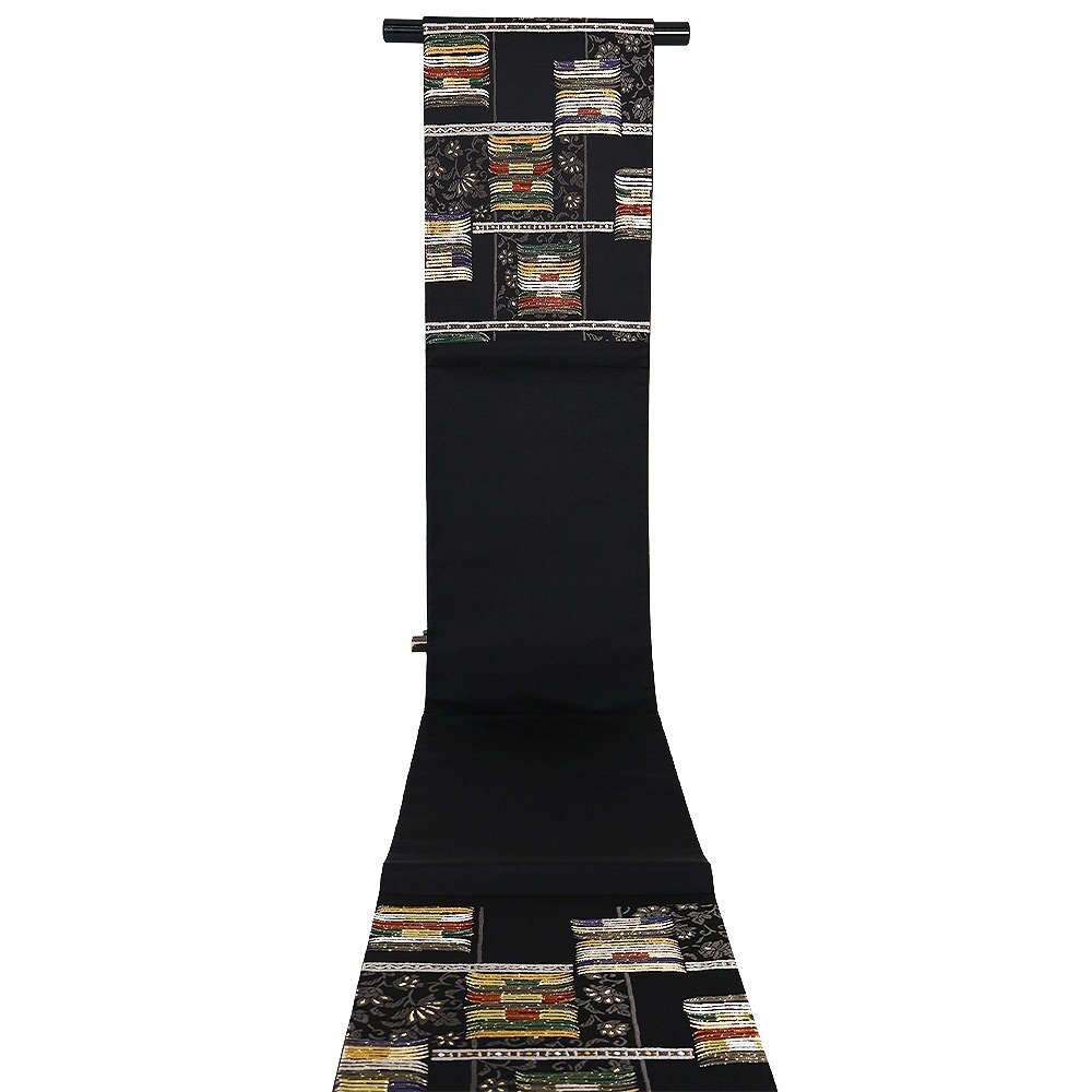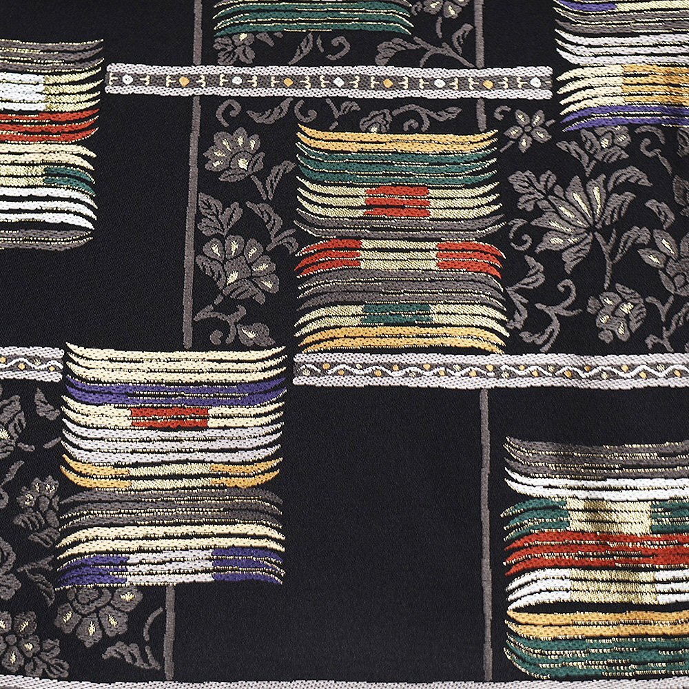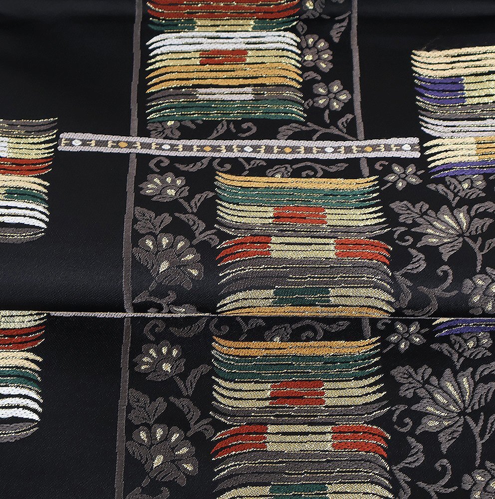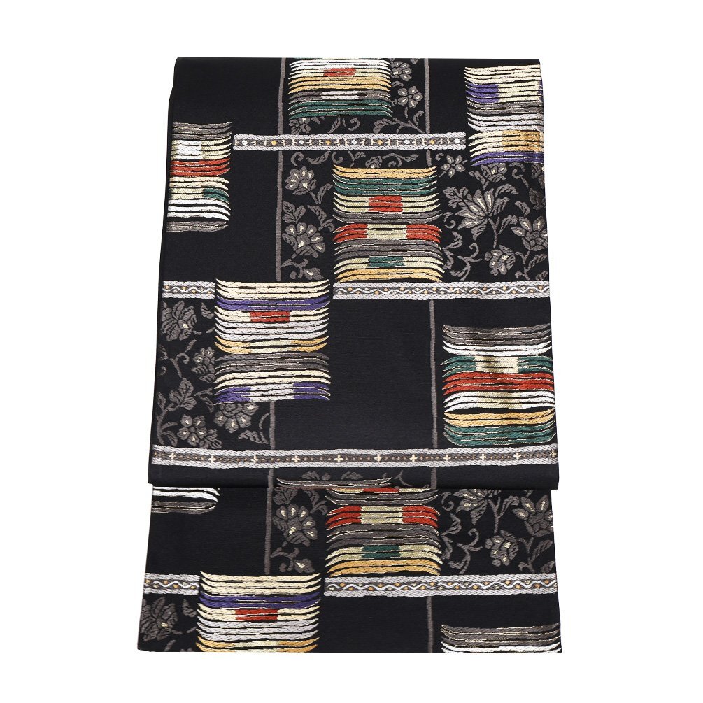 | 西陣織袋帯 黒地 鎧文・唐花 未使用品 仕立て上がり |