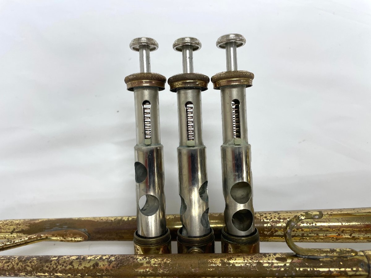 商品説明 | 品名:トランペット メーカー:YMAHA 品番:YTR-233 付属品:ケース、マウスピース 状態:J 使用には修理・調整が必要なジャンク品です。 ・ピストン動きました ・抜差管全て動きません ・へこみ、さびがあります ・7Cと読める刻印のみ記されたメーカー不明のマウスピースが付属します ハードケースをプチプチに包んで発送致します。 |