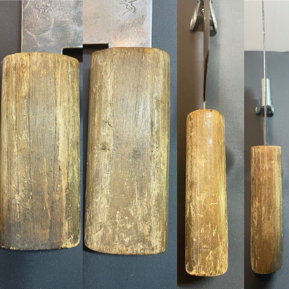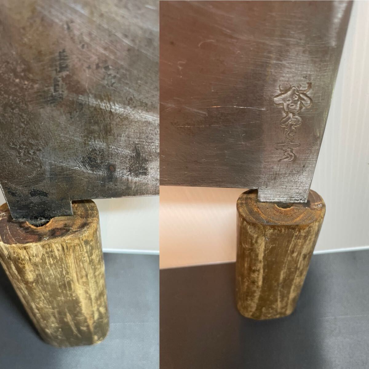中古の包丁です。研ぎが足らない場合は必要に応じて再研ぎしていただければ、まだまだお使いいただけると思います。