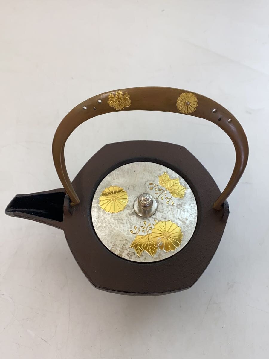 | 小鉄瓶/六角形菊桐彫/一文字2.4菊桐/庄兵衛作/鋳鉄製 ※サビ有り 店頭でも併売している商品の為、撮影時と状態が異なる場合がございます。 何か不明な点がございましたら店頭までお問い合わせください。 |