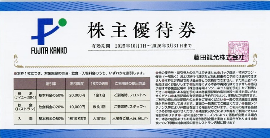 藤田観光 株主優待券