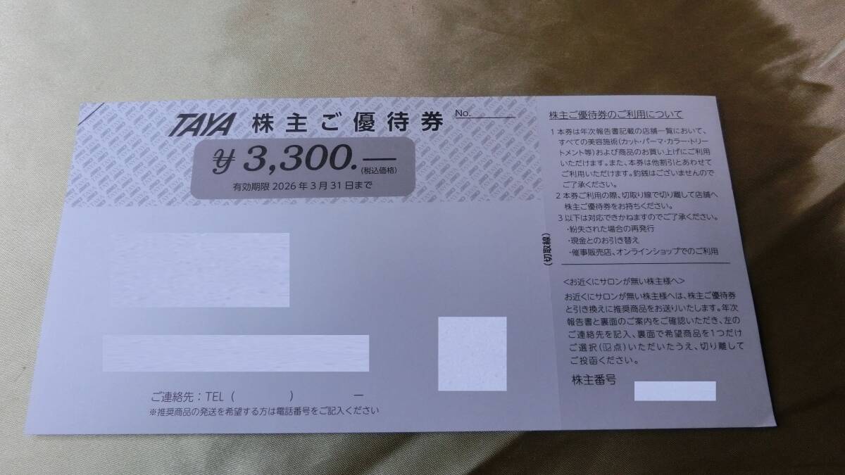 b■株主優待 田谷(TAYA) 優待券 3300円★送料85円~♪