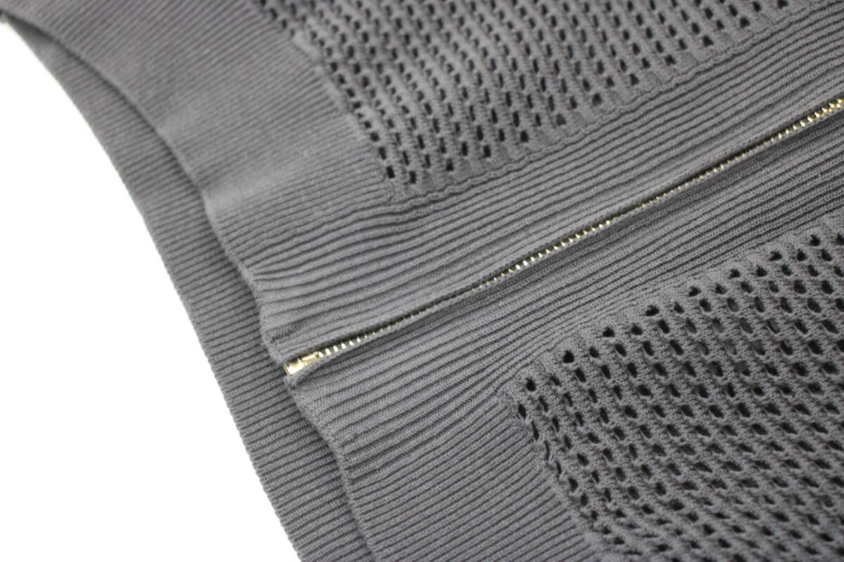 4926 新品 メッシュ編みニットブルゾン チャコールグレーFサイズ