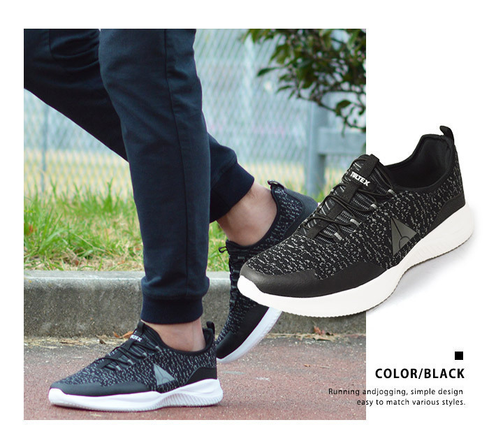 アッパーは通気性の良いメッシュ素材で、ジョギングなどに最適。