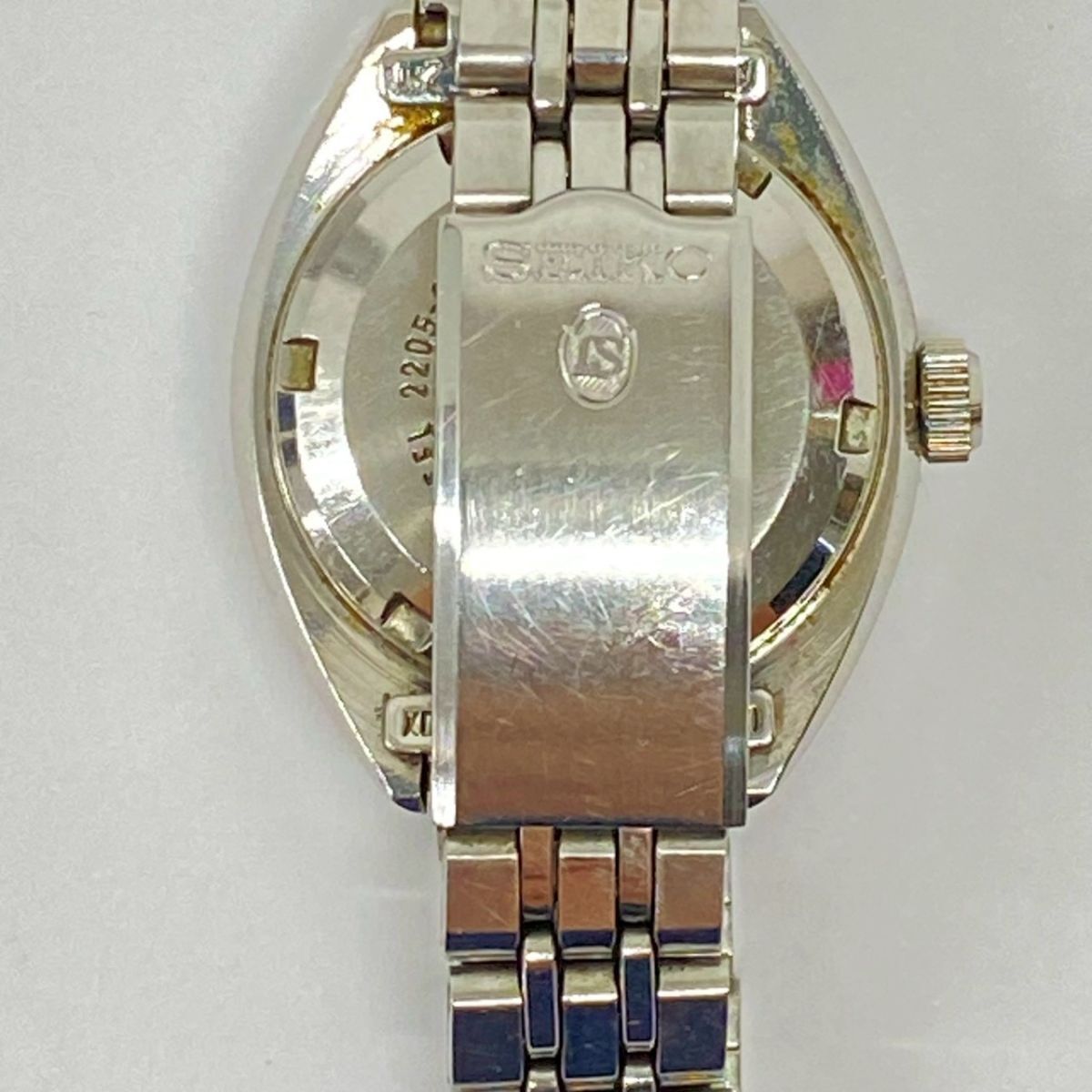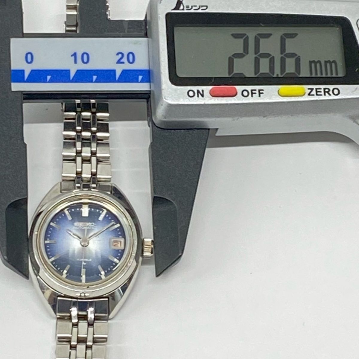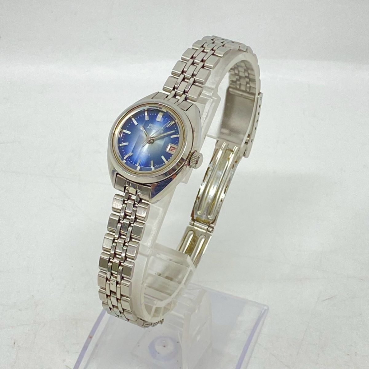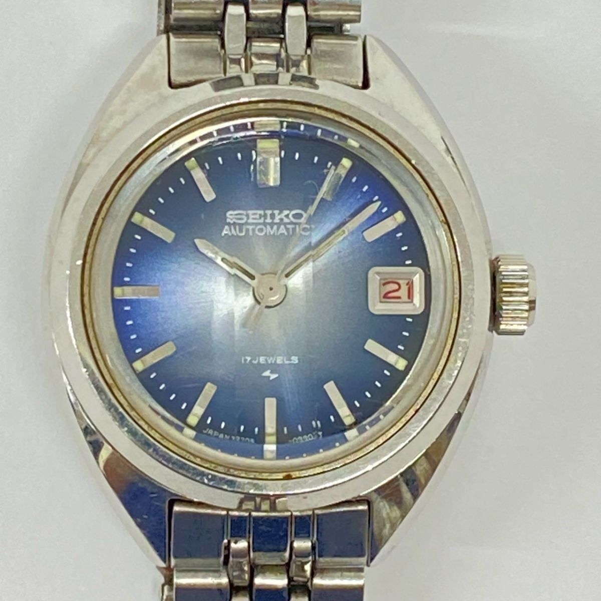 ♪yy4185-4 852 SEIKO セイコー AUTOMATIC 17石 2205-0580 青文字盤 自動巻 デイト レディースウォッチ 腕時計 腕周り約15cm 稼働
