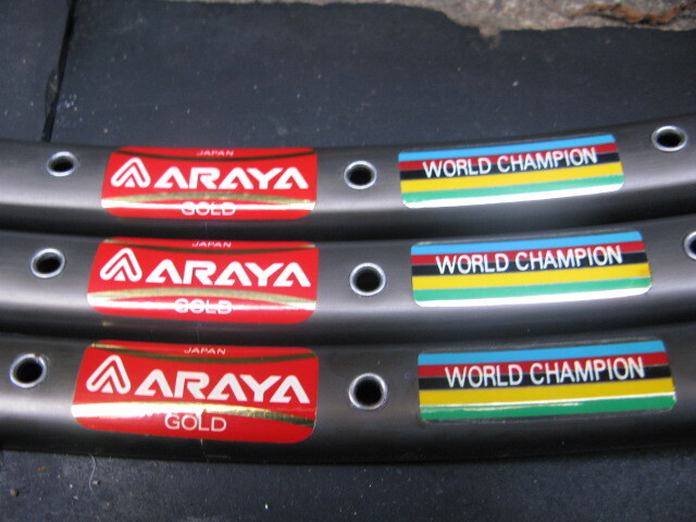 ARAYA GOLD【WORLD CHAMPION】27in32Hチューブラーリム3本未使用品です。