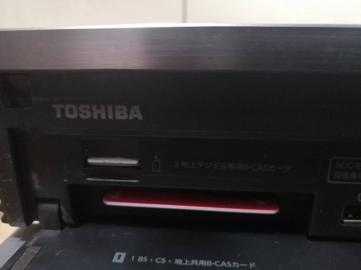 東芝TOSHIBA REGZA DBR-M190 HDD&ブルーレイ ハイビジョンレコーダ- タイムシフトマシンで本体と純正専用リモコン(SE-R0410)と青ミニB-CASカードと赤B-CASカードです。