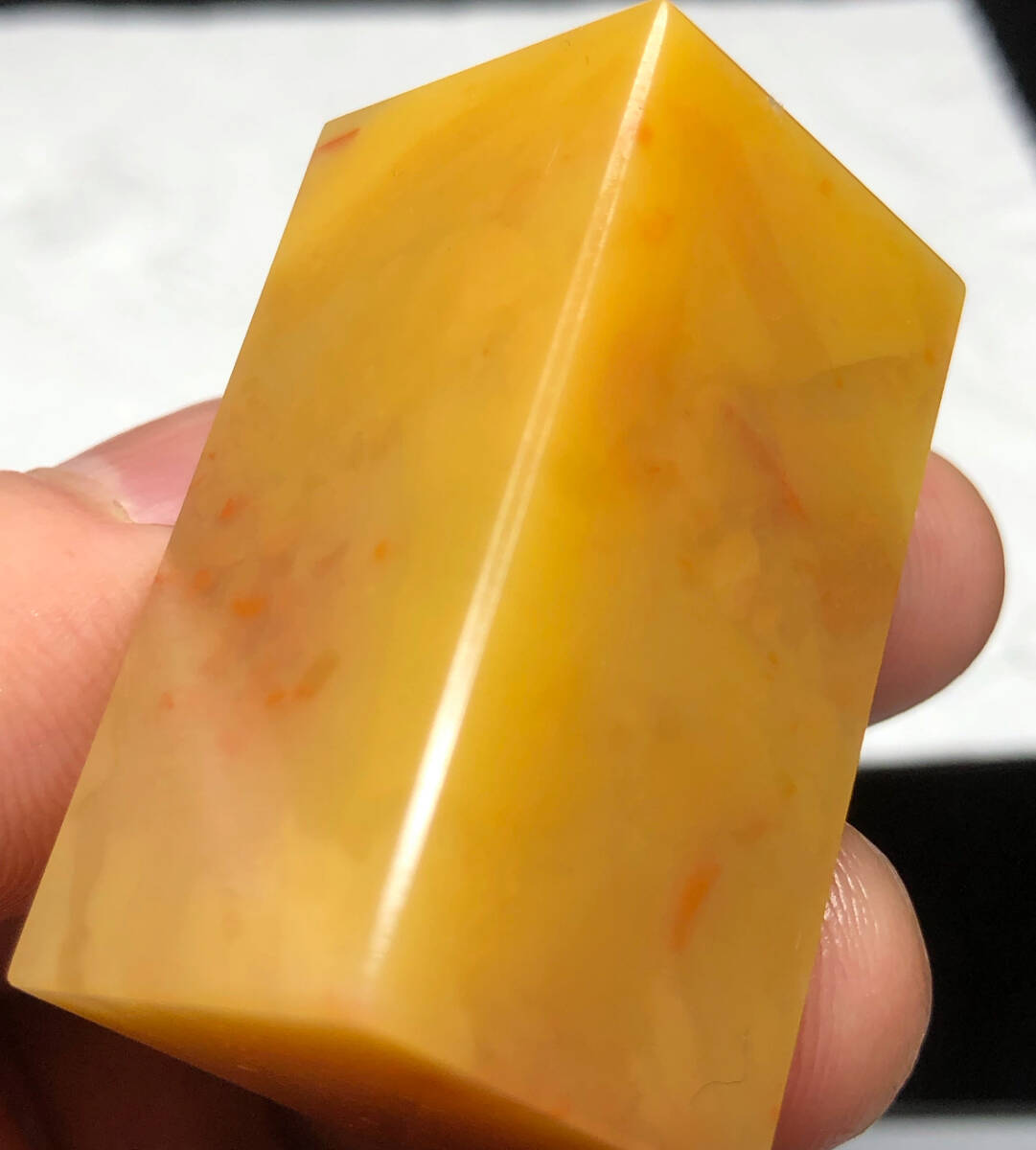 ◆寿山石とラオス石は気温の変化から守るために油(昔の化粧品に使われているもの)を塗ってあります。購入後も定期的に塗ることをお勧めします。当店ではほとんど扱っていませんが高級な寿山芙蓉石は油を塗ると逆に変色や割れを起こしてしまいますのでご注意ください。顔に擦って顔に付いている油をつけるのが一番無難です。一部の青田石と昌化石には蜂蝋を塗ってあります。紙やすりで落として使用してください。写真には写っていませんが後から小さい識別用のシールを貼ってありましてご迷惑をかけしますがそのまま発送させていただきます。