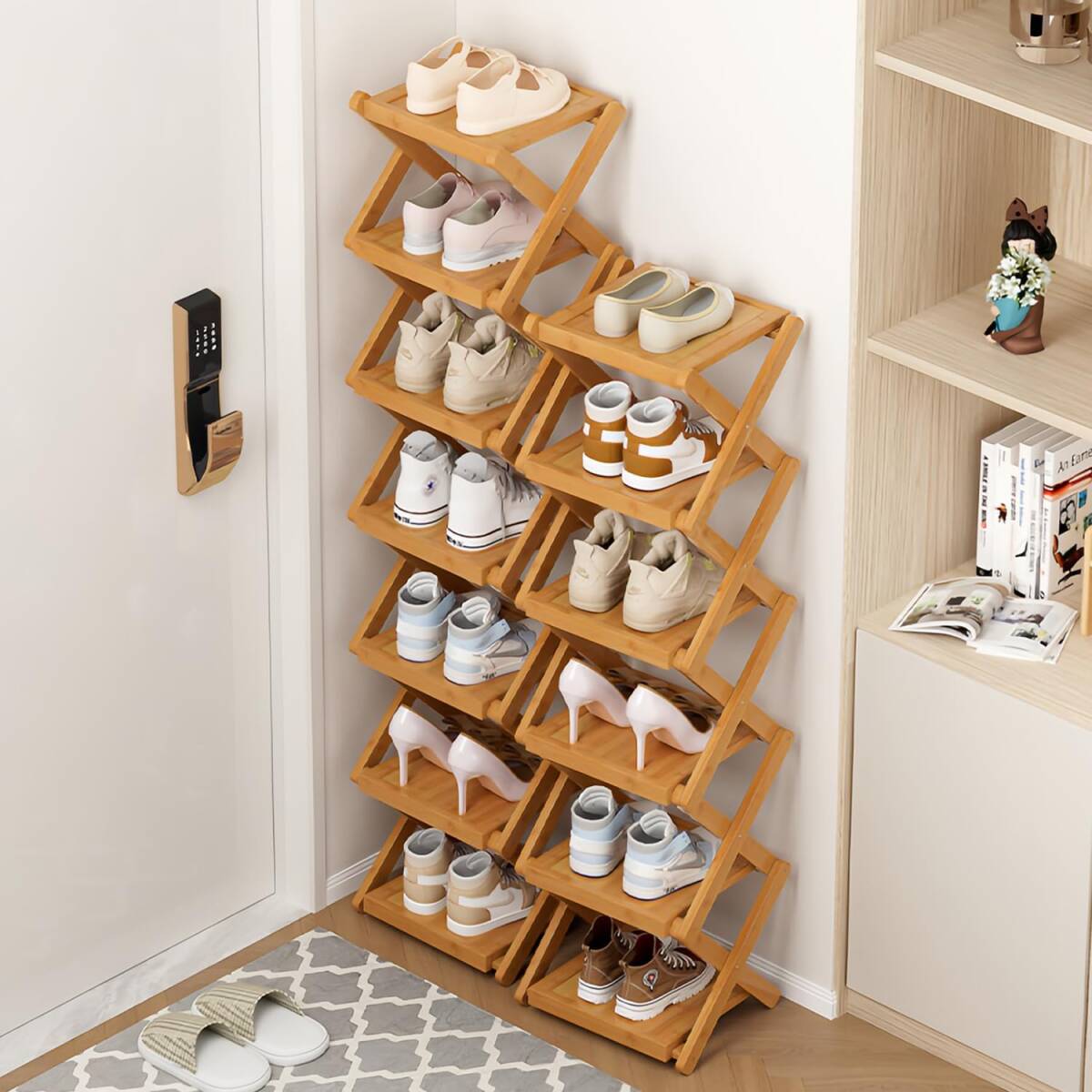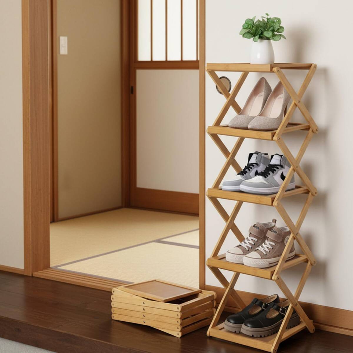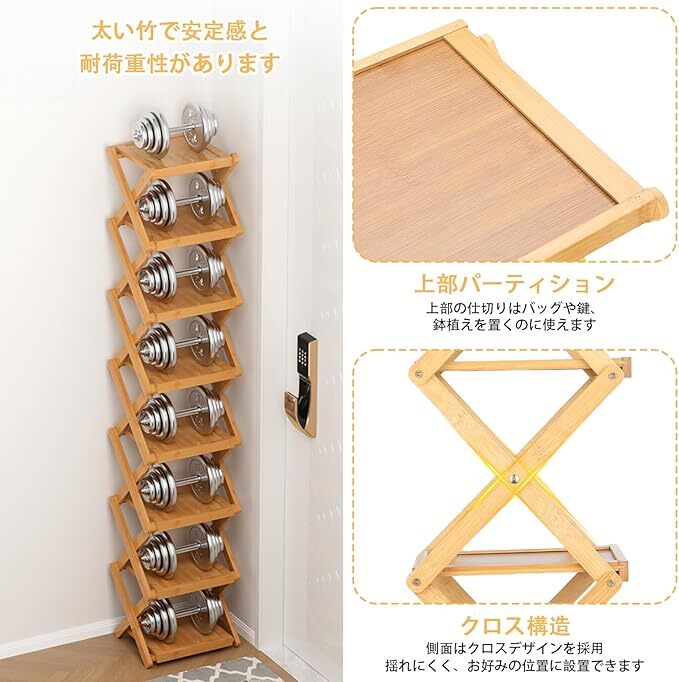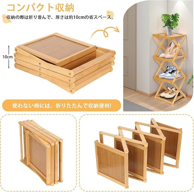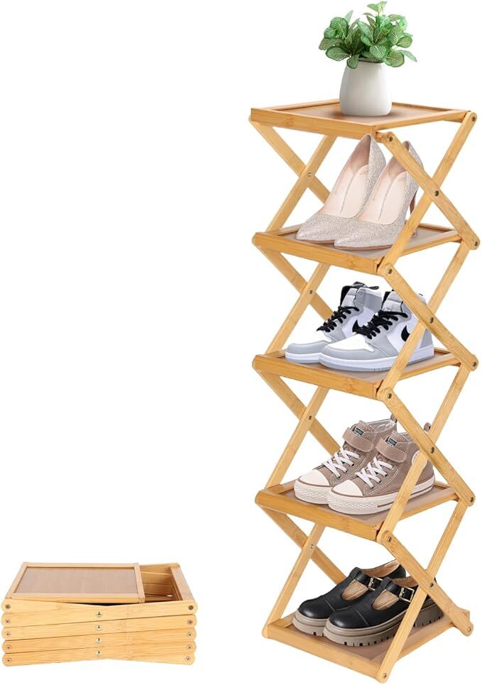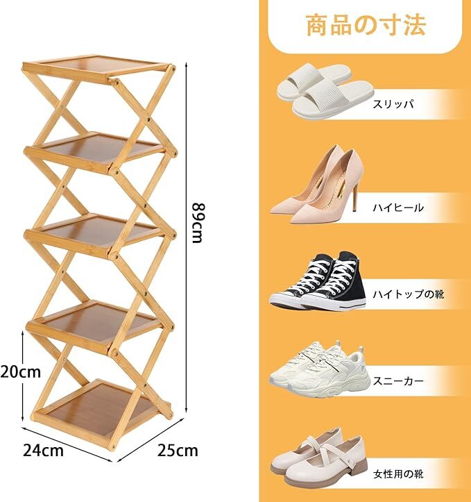 Amazon | Vinnatsuシューズラック スリム 折りたたみ可能 靴箱 靴棚 下駄箱 靴 収納 棚 収納棚 玄関収納 省スペース 組立不要5段/6段天然竹製 (25cm*24cm*89cm)