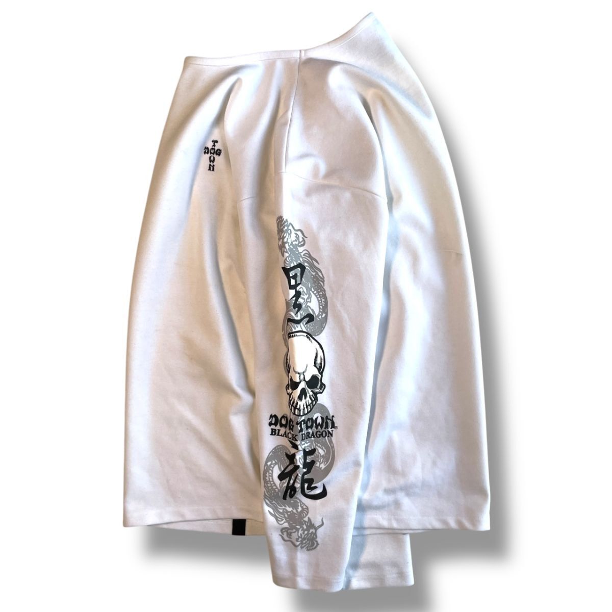 国内正規品★ DOGTOWN ドッグタウン BLACK DRAGON 黒龍 メンズ 両袖プリント 厚手 ロングスリーブ Tシャツ ロンT 長袖 白 スカル 龍 古着