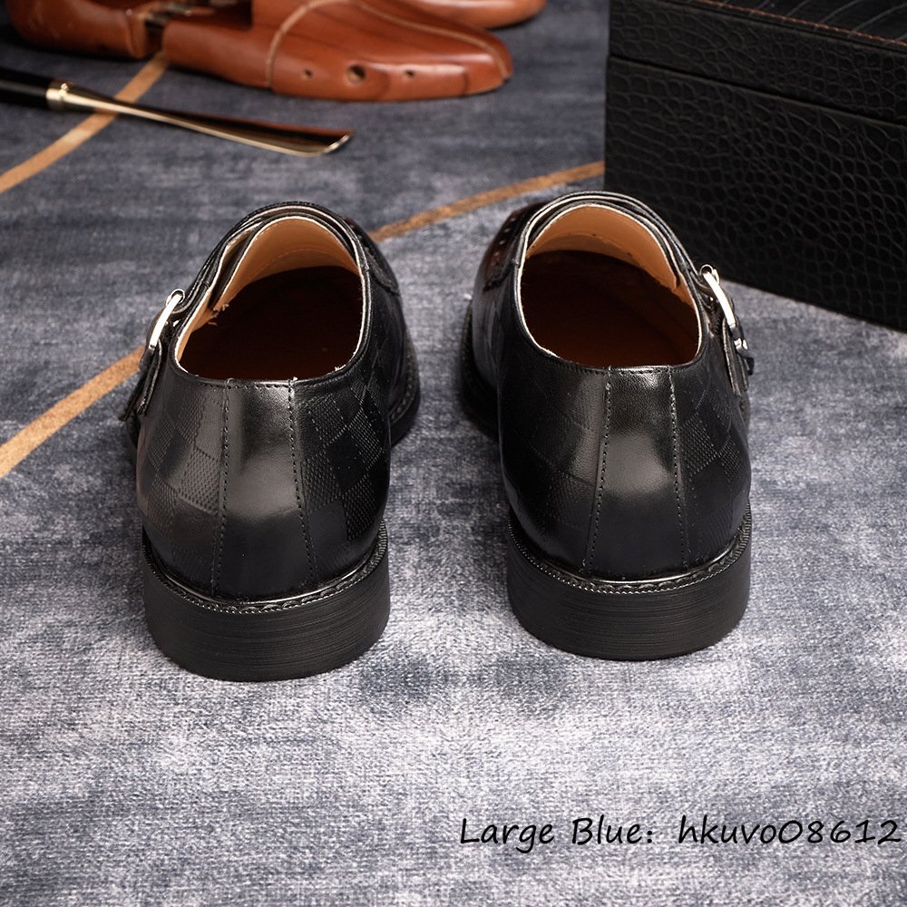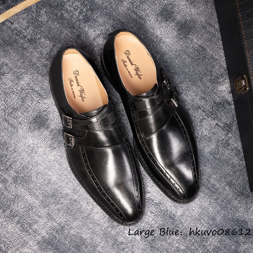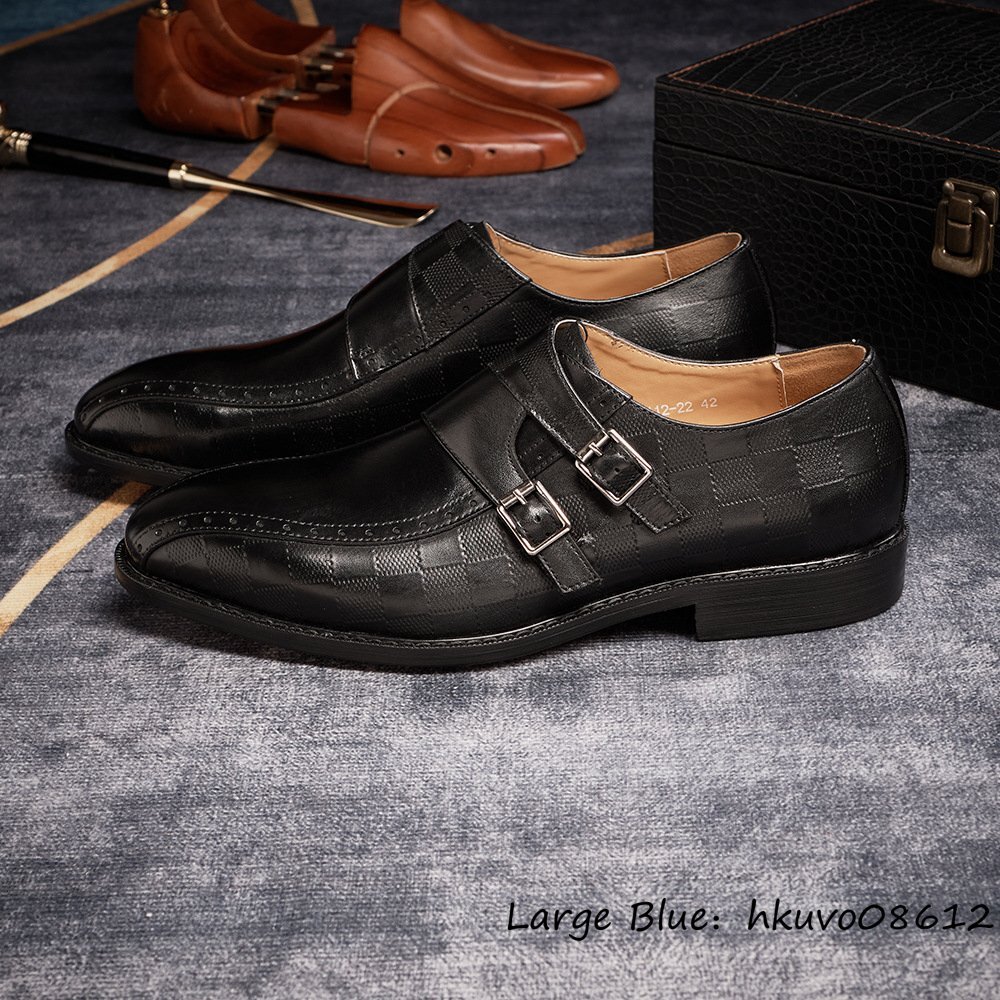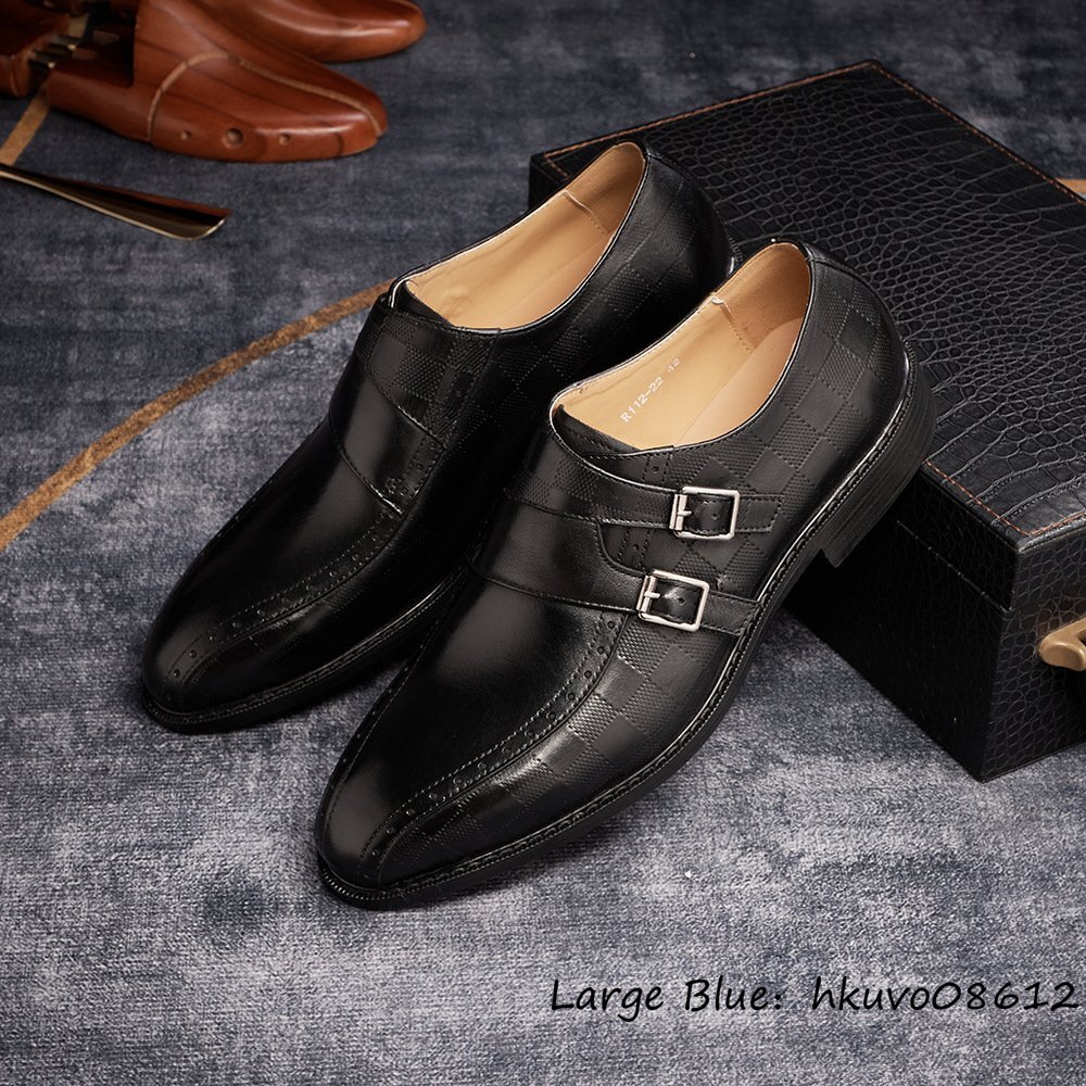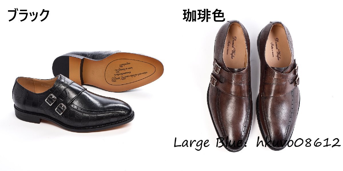 超希少★メンズシューズ 本革 ダブルモンクストラップ 紳士靴 職人手作り 彫り ビジネスシューズ 上級牛革 レザーシューズ ブラック 24.5cm