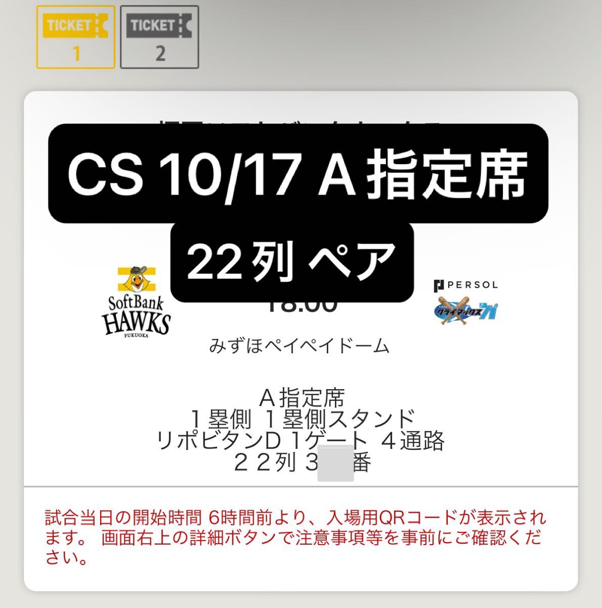 10/17 A指定席ペアです