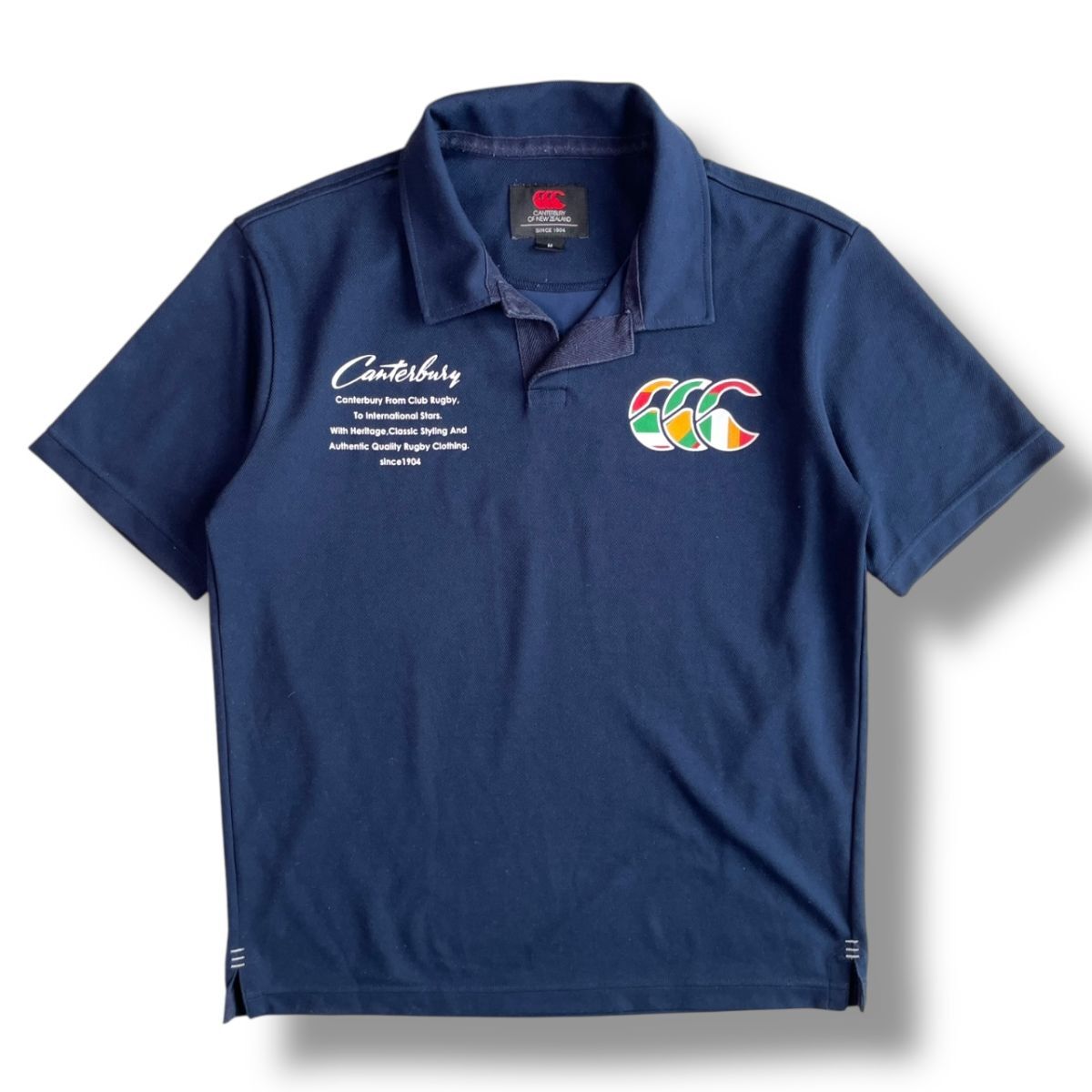 国内正規★ CANTERBURY OF NEWZEALAND カンタベリー 半袖 ロゴプリント ポリエステル ポロシャツ ネイビー ラグビー RUGBY ユニフォーム