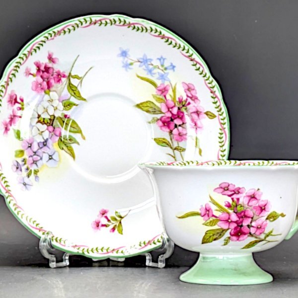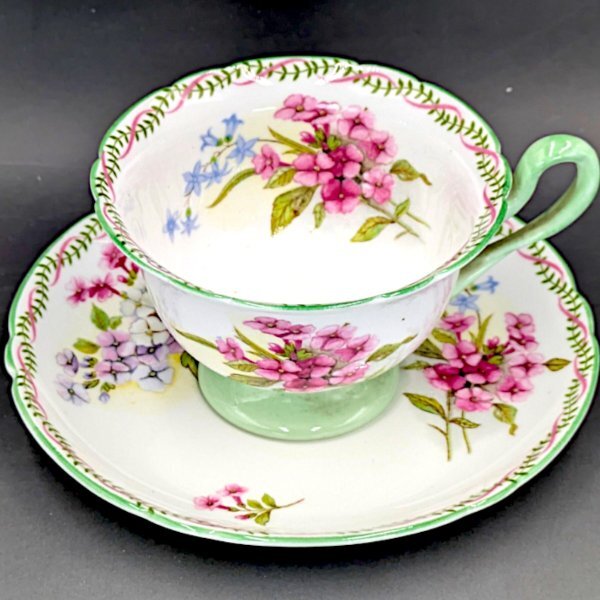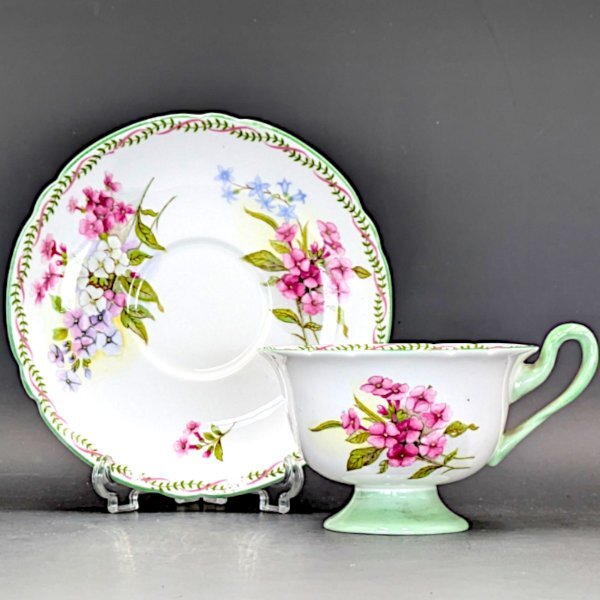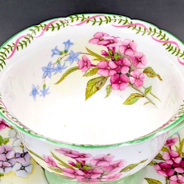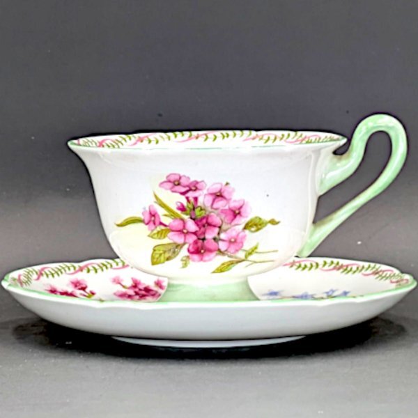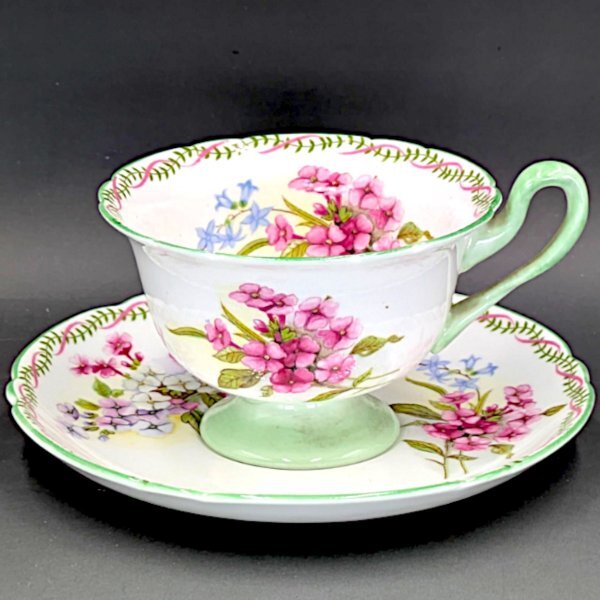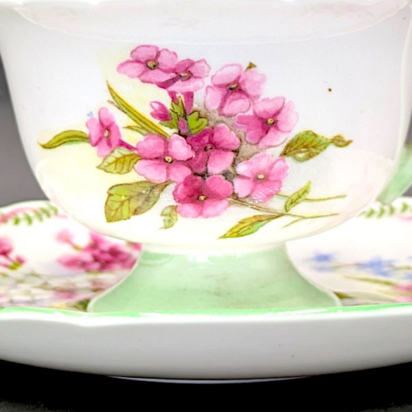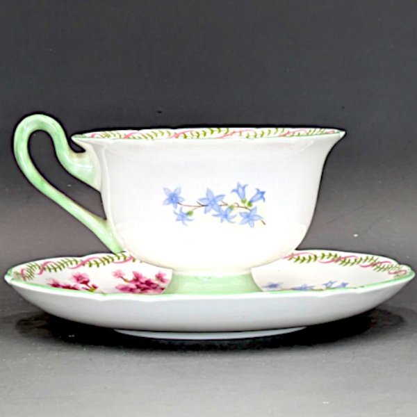 こちらは、1950年代に英国シェリー社で製作された、可憐な忘れな草(ワスレナグサ)模様のキャビネットカップです。